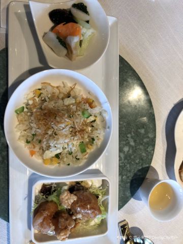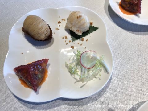 丁小姐19秋季RW 1st。很意外,set的搭配很和谐,口感,风味,完整度很高,整体的服务感也很棒,即使没有点饮料,添水不带停的,还有附送的马爹利干邑。 前菜的云耳开胃,也解了松板肉的一丝油腻。点心拼盘,都很精致,符合应有的质素,对比前些时候那家糟糕的水晶饺,又加分了。就是前菜,汤品,点心一起上桌,有点缺陷,让先用哪样? 主菜的虾仁和素菜就比较普通了,但是蛋白炒饭粒粒分明,调味适中,喜欢。 甜品一般,豆腐冰淇淋比较寡淡,偏霜的质地,豆腐味奶味略显不足。杨枝甘露也比较普通,就是西米应该是换成了自制的jelly?有心思但依旧没有摆脱平庸。 但是,综合环境,服务,菜品,价格,诚意满满5星。