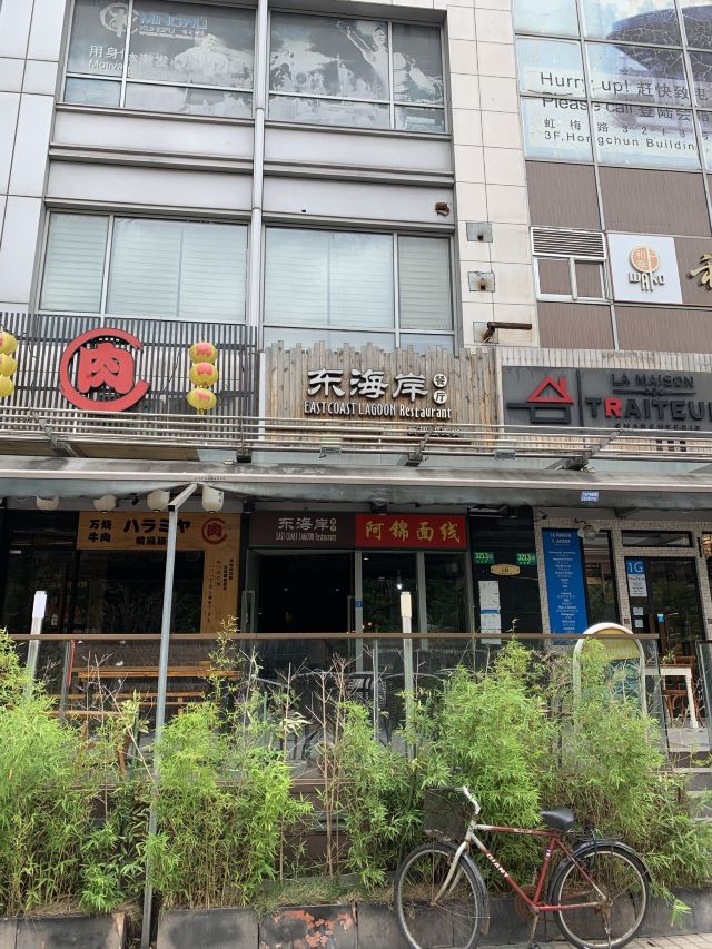 音家╮╮╮ Ⅶ☽ 卍 ╭╭╭ N年前的阿锦面线,在附近的路口,好几年没来了,现在的地方➡️离以前百米左右,沿马路的一排餐厅,各家经营特色,整体搭配上去了,停车就在旁边,很方便️ 老板还没换,仍以台式料理为主,增加了一点新加坡菜系,多道海南鸡饭,堂内墙上挂着李光耀总理的照片,嗯…有点… 肝连肉,白灼的经典台式小吃,蘸着带蒜蓉的酱油膏,一块块肉中有肥,切的稍大,实在了些,倒也是实打实的一盘 大肠蚵仔面线,看勺起勺落,大肠蚵仔尽在手里到口中,桌上摆些调味品,会更细心,我比较喜欢加点醋提味,看看中午客人还不少,服务员忙来忙去,没提 ㊗️店家和气生财、生意兴隆