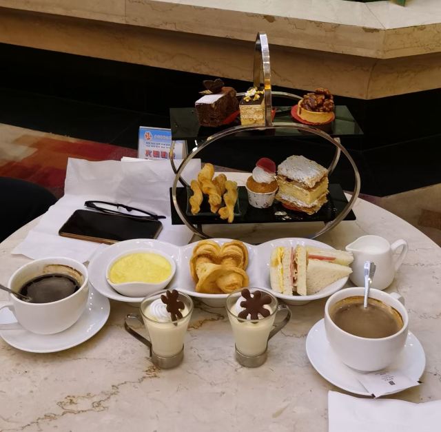 GuoJi Restaurant DaTang Coffee Ba环境不错。服务也不错。💐💐💐 下午茶一般!好像终于发现了国际饭店的蝴蝶酥与众不同的地方啦😄😄😄 所有的餐具上居然都没有酒店的logo😓 一定要记得去二楼看酒店的历史展览👍👍👍。