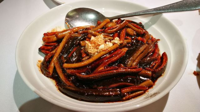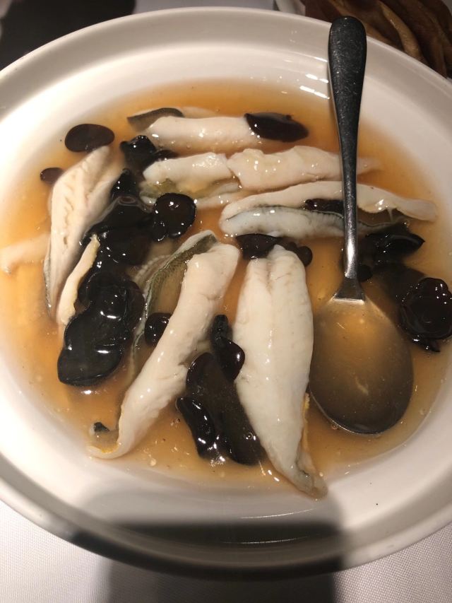 泡泡龙他爸港汇恒隆广场的苏浙汇现在很少去,虽然菜还是一如既往做得不错的。一则港汇恒隆广场近来在彻底翻修,环境差了许多;二则苏浙汇大厅不接受订位,但某些菜像桂鱼又一定要预订才能吃得到,那只有转战其他地方了。其实一年多前老同学回国聚会曾经在这里包房用餐过,可惜那些大菜都没拍照。近来去了两次,发现服务生人数变少了,服务态度还是不错,但不容易叫到人,结账要提早些叫。内部卫生间关闭了重新装修,只能到餐厅外去用了。说说菜的变化,樟茶鸭水准不稳定,有一次做得太老了;倒是这次吃的清蒸大扁鱼少见,令人十分满意。这里最不讨人喜欢的是开发票两个家伙的样子,一副不理不睬觉得她们是老板的亲戚不应该干活你去是干扰了她们的态度,实在是个败笔