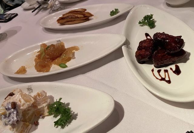 越式牛肉粒,素鲍鱼,杂粮核桃色拉,清炒大虾仁,越式牛柳粒,熏溏心蛋配鹅肝酱,苏浙汤包,核桃枣椰糕,招牌黑叉烧,鲜虾肉锅贴,素炒蟹黄,枣香椰糕,干椒雪花牛肉粒,苏浙本帮熏鱼,招牌素鲍鱼,清蒸鲥鱼,本帮特色红烧肉,清炒高邮河虾仁,招牌苏浙樟茶鸭,蟹粉小笼,本帮糖醋小排,油爆虾
