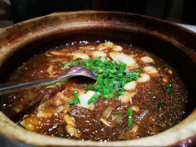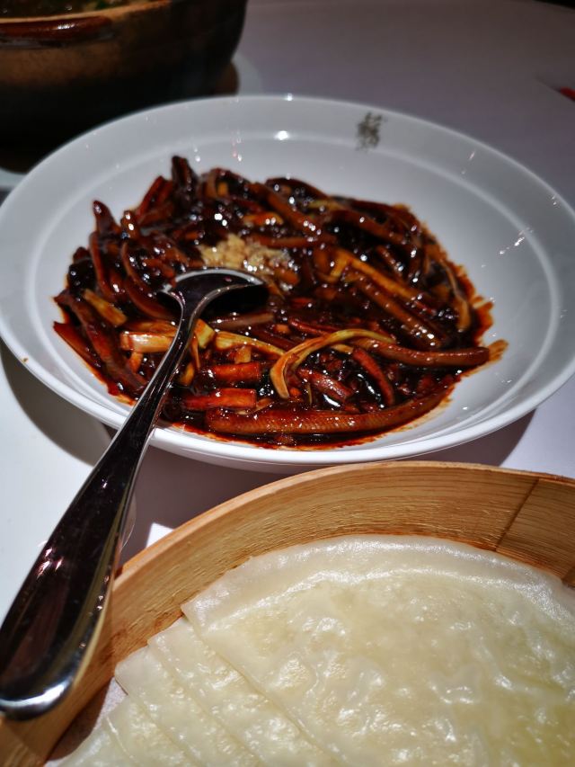 SuZhe Hui (GangHui Plaza)📍港汇广场5楼。 【环境】同事聚餐预定的包房,面积不小,装修风格典雅大气,房间里有沙发客供休息,圆桌座14人正好,还带洗手间。 这家本帮菜还是很有名的,味道也不错! 葱爆蟹膏、大明虾、本帮特色红烧肉、糖醋小排、响油鳝丝包饼都很好吃😋 【杨枝甘露】同事普遍感觉有点薄。