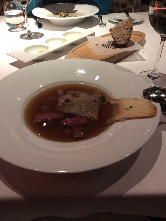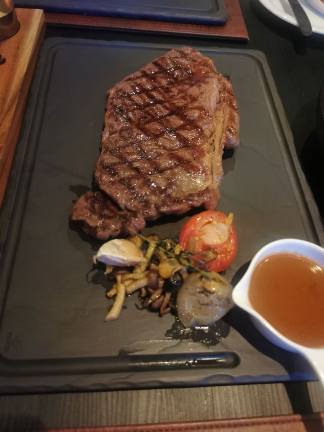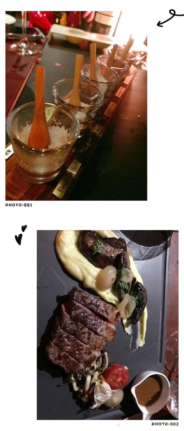 YoYo_9L8K2S7A每年都要打卡的餐厅,今年选在了秋季餐厅周,一进门感觉风格变化蛮大,多了两个干式牛排的冷柜,带有仪式感的白色桌布也不见了,有点像bistro。汤和前菜还是老样子,没有什么太大变化,tata的酱汁似乎变了配方,没有那么讨我喜欢。主菜加了钱,选了牛肉,三分熟,粉红色,多汁可口。惊讶这次的牛肉选用了西冷,以前大多都是菲力,而且这次分量也比以前多。甜品也是超级超级超级超级好吃,尤其是我最爱的冰淇淋。最值得提的是侍酒师Alex推荐的酒水,朋友偏爱单宁中等的红,我偏爱白,他为我们推荐了中国的一红一白,特别好。期间经理Charles一直有过来打招呼,询问菜品,服务,还和我们讲餐厅的故事,十分热情。感谢两位的服务,还会再去的。