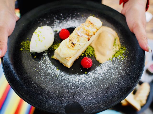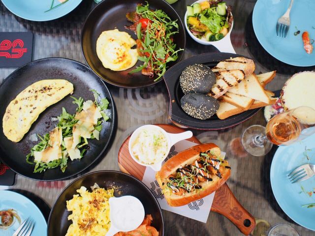 peachsai随心早午餐分二道式和三道式,价格分别为198和298元,可从生食、冷盘和辛辣、素食主义早午餐还有鸡蛋早午餐这三档中选择,一共11道,量不少可以跟朋友分享。 牛肉塔塔是招牌,主厨善用酱汁,黑白似符号的酱汁与牛肉拌匀,加上当中的窝蛋,让牛肉更增添润滑的口感,鲜咸开胃;烟熏和牛肉薄片,有些意式的摆盘,牛油果、脆干葱还有点烟熏辣椒提味,牛肉非常入味带有点小刺激的辣度很是爽口,蘸着青柠烧烤酱一起吃还起到了一定的去腻效果,牛肉因为薄切也特别的嫩。魔鬼蛋辣味鸡尾酒虾, devil eggs真是老少咸宜,很家常的一道开胃的菜,由于chef的巧思妙想,跟带有点果橙味的大虾还有些许辛辣刺激味蕾而显得不一般。 鸡蛋作为brunch的主角,无非是跟各种食材搭配,这里的chef把鸡蛋处理的特别好吃也是不容易,因为鸡蛋实在太显而易见的食材了。黑松露煎蛋饼,鸡蛋卷成了蛋饼装,夹杂了黑松露的菌香,搭配烟熏过的车打芝士、牛肝菌还有烤过的黄油面包,香就一个字,力荐! 牛肉遇上鸡蛋,前面吃了几款牛肉开胃菜,这里跟鸡蛋也能擦出火花,慢炖的牛脸肉丝丝入味,水波蛋、传统的蛋黄酱和迷迭香玉米粥,一款很南美风的早午餐,能量满满。烟熏三文鱼搭配炒鸡蛋,三文鱼量不少,跟炒过的嫩鸡蛋half and half,里面还搭配了水瓜柳、鲣鱼片和莳萝酸奶油,滋味纷呈,颜色也特别诱人。 主食来点heavy的,我们都是饥饿人。有汉堡、三明治、猪肋排、羊小腿还有意面,选择很多。 选了牛排三明治,对半切开,搭配的松露味薯条一定要试试,很香脆,松露菌香一直伴随。三明治里的stuff很丰富,有慢烤草饲牛臀肉牛排,烟熏番茄酸辣酱还有瑞士奶酪加上炒洋葱和牛排菇,层次感丰富,口味馥郁,牛肉很酥。 同样辣味明虾卷分量也不少,虾虾很多,伴随蒜泥蛋黄酱和香菜秒真的不错吃,另外还有酸黄瓜解腻。主食另有4款不同的配菜,特别适合分享。 甜品有4款,是甜食爱好者的sweet dream,安利“伊甸园”,一款莓果加上柠檬蛋白霜还有奶油和草莓雪葩的甜品,口感有脆有绵,变幻交替中寻求平衡。 香蕉和酥脆碎粒是由焦糖味的香蕉切片,榛果味的冰淇淋还有柠檬奶油和曲奇碎粒混合出一道独具创意的甜品! 酒水畅饮有套餐,有份无酒精鸡尾酒+88,葡萄酒+168还有疯狂气泡酒-4款夏桐很值得一试,喜欢偏粉色的一款。 玛姆红带特级法国香槟+888,能喝懂喝的肯定超值。