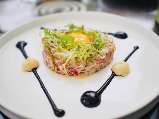 CHAR bar and grill随心早午餐分二道式和三道式,价格分别为198和298元,可从生食、冷盘和辛辣、素食主义早午餐还有鸡蛋早午餐这三档中选择,一共11道,量不少可以跟朋友分享。 牛肉塔塔是招牌,主厨善用酱汁,黑白似符号的酱汁与牛肉拌匀,加上当中的窝蛋,让牛肉更增添润滑的口感,鲜咸开胃;烟熏和牛肉薄片,有些意式的摆盘,牛油果、脆干葱还有点烟熏辣椒提味,牛肉非常入味带有点小刺激的辣度很是爽口,蘸着青柠烧烤酱一起吃还起到了一定的去腻效果,牛肉因为薄切也特别的嫩。魔鬼蛋辣味鸡尾酒虾, devil eggs真是老少咸宜,很家常的一道开胃的菜,由于chef的巧思妙想,跟带有点果橙味的大虾还有些许辛辣刺激味蕾而显得不一般。 鸡蛋作为brunch的主角,无非是跟各种食材搭配,这里的chef把鸡蛋处理的特别好吃也是不容易,因为鸡蛋实在太显而易见的食材了。黑松露煎蛋饼,鸡蛋卷成了蛋饼装,夹杂了黑松露的菌香,搭配烟熏过的车打芝士、牛肝菌还有烤过的黄油面包,香就一个字,力荐! 牛肉遇上鸡蛋,前面吃了几款牛肉开胃菜,这里跟鸡蛋也能擦出火花,慢炖的牛脸肉丝丝入味,水波蛋、传统的蛋黄酱和迷迭香玉米粥,一款很南美风的早午餐,能量满满。烟熏三文鱼搭配炒鸡蛋,三文鱼量不少,跟炒过的嫩鸡蛋half and half,里面还搭配了水瓜柳、鲣鱼片和莳萝酸奶油,滋味纷呈,颜色也特别诱人。 主食来点heavy的,我们都是饥饿人。有汉堡、三明治、猪肋排、羊小腿还有意面,选择很多。 选了牛排三明治,对半切开,搭配的松露味薯条一定要试试,很香脆,松露菌香一直伴随。三明治里的stuff很丰富,有慢烤草饲牛臀肉牛排,烟熏番茄酸辣酱还有瑞士奶酪加上炒洋葱和牛排菇,层次感丰富,口味馥郁,牛肉很酥。 同样辣味明虾卷分量也不少,虾虾很多,伴随蒜泥蛋黄酱和香菜秒真的不错吃,另外还有酸黄瓜解腻。主食另有4款不同的配菜,特别适合分享。 甜品有4款,是甜食爱好者的sweet dream,安利“伊甸园”,一款莓果加上柠檬蛋白霜还有奶油和草莓雪葩的甜品,口感有脆有绵,变幻交替中寻求平衡。 香蕉和酥脆碎粒是由焦糖味的香蕉切片,榛果味的冰淇淋还有柠檬奶油和曲奇碎粒混合出一道独具创意的甜品! 酒水畅饮有套餐,有份无酒精鸡尾酒+88,葡萄酒+168还有疯狂气泡酒-4款夏桐很值得一试,喜欢偏粉色的一款。 玛姆红带特级法国香槟+888,能喝懂喝的肯定超值。