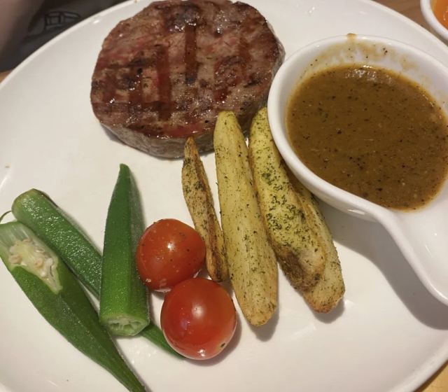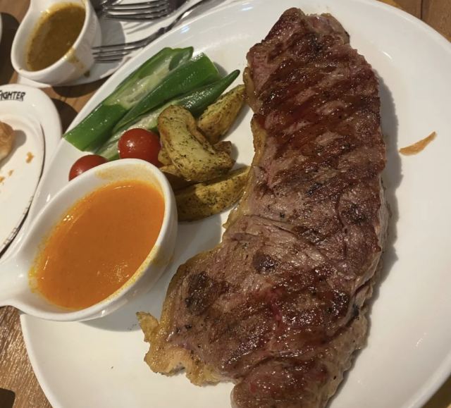 牛排餐厅的性价比之选,六一节带着孩子去吃的,140以下的儿童免费一份儿童牛排餐,我们大人各点了一份牛排🥩套餐,大人加58元自助畅吃,儿童28元自助畅吃,挺划算的。一家三口👨👩👧吃了350元左右,点的是98元的上脑牛排,就是厚切牛排,品质不错,推荐这款,比普通的贵20元,但是品质保证!儿童送的牛排套餐也不差哦,见图一,单点也是58元一份呢!孩子挑选的这家,没想到还不错,超出预期吧!另外现磨咖啡不错!