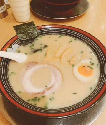 在环球金融中心的楼下。下电梯就能看到。店面不算大,但人气超高。点了招牌东京豚骨拉面,适中软度,面很筋道有嚼劲,汤很浓郁,还有自家的咸菜,有点小辣。