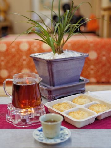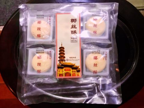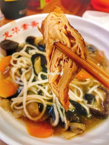 彼岸之澄新年第一天,去龙华寺祈福,当然不能错过2022年开年的第一碗越年面。 🎎上海非物质文化遗产,龙华禅食。有很多种可外带的美食。诸如绿豆糕、素鸭、素火腿、芝麻糖等等。因为是元旦假期,只提供越年面一种选择。 人气火爆,吃面的人从出餐口一直排到门外再转弯,多亏出餐快,又是吃面。排队大概一刻钟。 🍜「越年面」大概人太多了忙不过来,面条软的一塌糊涂,面汤让人有种在吃方便面的感觉…下次人少再来试试吧。 [自拍]「绿豆糕」绿豆糕买了木糖醇的,热量有点高。口感绵密细腻,甜度也OK。 🦆「素鸭」素鸭一整条,也是店里的热卖产品,可以买一条回去吃吃。 ☕️「燕麦拿铁」与时俱进的素斋,还有咖啡卖。老实讲虽然是现磨咖啡,但真的不怎么好喝… 来龙华寺的话,还是推荐来吃个素面买买小食的。