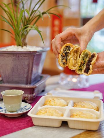 实叶熏中秋节日到了,又到了一年一度吃月饼的时候了。这次选了非遗的龙华月饼,选了苔条和椒盐两种口味,都是咸口的。 【口味】 苔条味月饼里面的苔条味浓郁,加上各种瓜子仁、松子仁、核桃等各种果仁,口感香脆可口。 椒盐味吃起来就没有苔条那么惊艳了,就是椒盐和果仁,虽然也很香很好吃,但是我更喜欢苔条味的。 我在排队的时候,陪同的家人点了碗素面,边吃边等我,跟我说面很好吃,强烈推荐。 【环境】 这个环境不提了,人山人海在外面排队两小时,什么环境都感受不到,买完赶紧走。 【服务】 服务就更不提了,明明写着每人限购30盒月饼。结果排到的时候跟我说,从今天开始每人限购10盒。我好不容易大老远赶来一次。中秋各种走亲戚加上自己吃,10盒怎么够?无奈排两次队,2个小时耗在这。这个服务差评✏️Tips: 有一年我害怕排队,特地过了中秋避开高峰来买,结果人家过了中秋就不卖了,要吃的乘早。