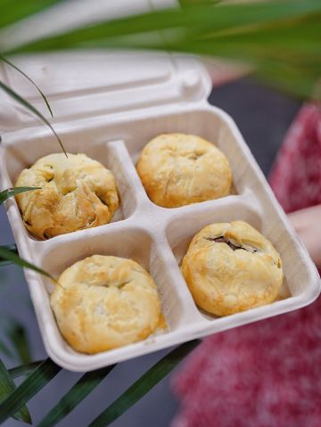 吃饭就别叫我了魔都必吃的现烤月饼竟然藏在龙华的后院⁉️ 滴滴~你的月饼已上线🎑又到中秋节啦❓被麻麻带回来的龙华素斋的现烤月饼填饱了,据说是非遗文化美食,每一口都酥进心窝🙆🏻♀️ 除了经典的四大金刚,今年还推出2款新品亚麻籽和糖醇黑麻,每一份都提供保温袋贴心包装,拿回家还是温温热热的呢🛍 ❤️苔条果仁❤️ 龙华素斋的美食名片,圈粉无数的中华名饼,现烤外皮酥脆掉渣,先是海苔的咸香,继而被饱满的果仁征服,难怪世世代代的上海人都钟情于Ta 🧡椒盐百果🧡 满满都是料的宝藏月饼,加入椒盐以后咸甜平衡,里面包裹核桃、莲子、腰果等,把整体层次感瞬间拉满了🔝 💛上品果仁💛 有了松仁神助攻,香气更是上了N阶📈丰富的果仁馅料超级好嚼,吃到第二口就后悔买少了‼️ 💚玫瑰豆沙💚 如果你也是甜派月饼的狂热爱好者,那么玫瑰豆沙绝对不能错过,香甜细腻入口即化,谁吃了不说一声绝! 💙糖醇黑麻💙 老年人都怕高血糖,但这款黑芝麻真的是救星,不甜不腻的口感老少皆宜 💜亚麻籽果仁💜 美容瘦身界的天花板亚麻籽,满足小仙女们口腹之欲的同时,又不会有太多负担哦 万万没想到,净素月饼也有这么多花样,不想排队自提的话,可以叫个外卖送到家哦🛵🥡💨💨