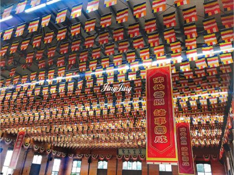 shinestone龙华寺是上海市民比较喜欢去的历史悠久的古寺庙。地铁12号线、11号线出站步行5一7分钟即到。门票素来亲民,每人1张门票10元。龙华寺烧香拜佛的香客信佛之人很多,不仅有中老年人士,还有外国信佛者及80后青年人。龙华寺不仅可以烧香拜佛,寺庙里鲜花很漂亮,而且每年春节来买犯太岁佛包,还可以到龙华寺内的素斋馆买福缘面(20元)及买大红袍一盒20小袋袋泡红茶,口味有绿茶、大红袍红茶(一盒20小袋58元)、白茶等多种,个人感觉大红袍红茶味道浓郁、口感很好,绿茶比较清新,白茶淡而无味、不推荐。 龙华寺素斋馆不仅有素面供应(上午),建议10点多就餐,迟了素面品种可能少了。还有鲜榨酸梅汤汁、鲜榨果汁、素火腿、素月饼、椒盐饼、绿豆糕等糕点、还有龙泉青瓷茶叶罐、保温杯、各类手串佛珠香袋等供应。