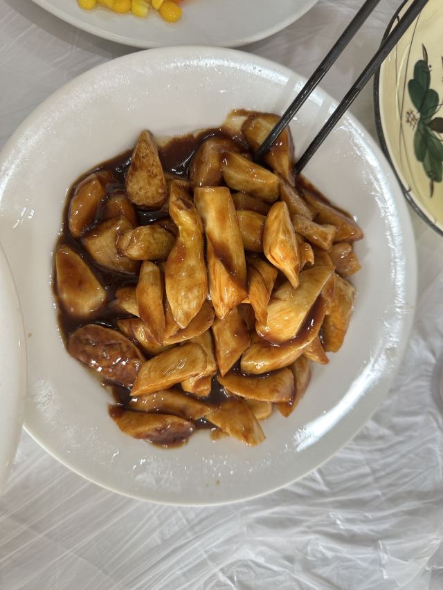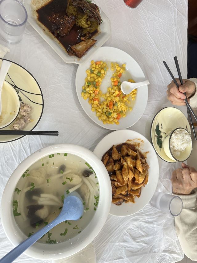 工作日中午,服务员比较少点菜要等,菜品比较清淡,价格比市区贵一点,但是周边没有选择,独此一家。