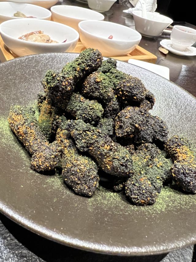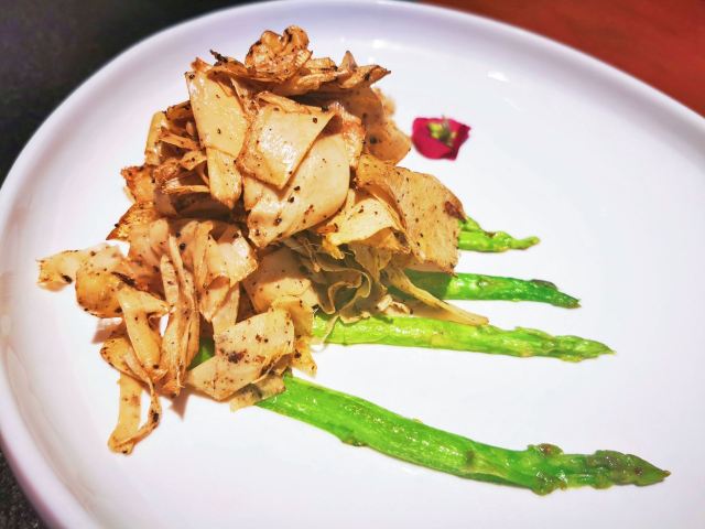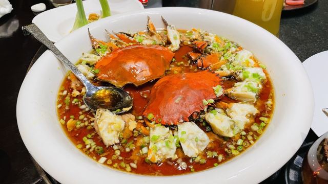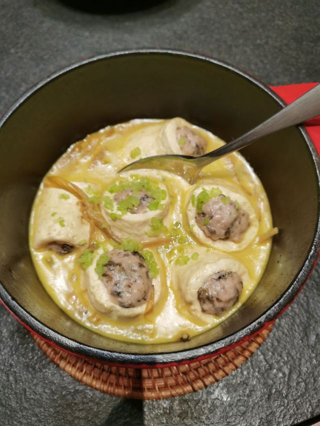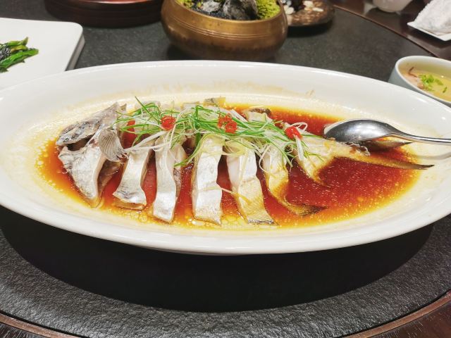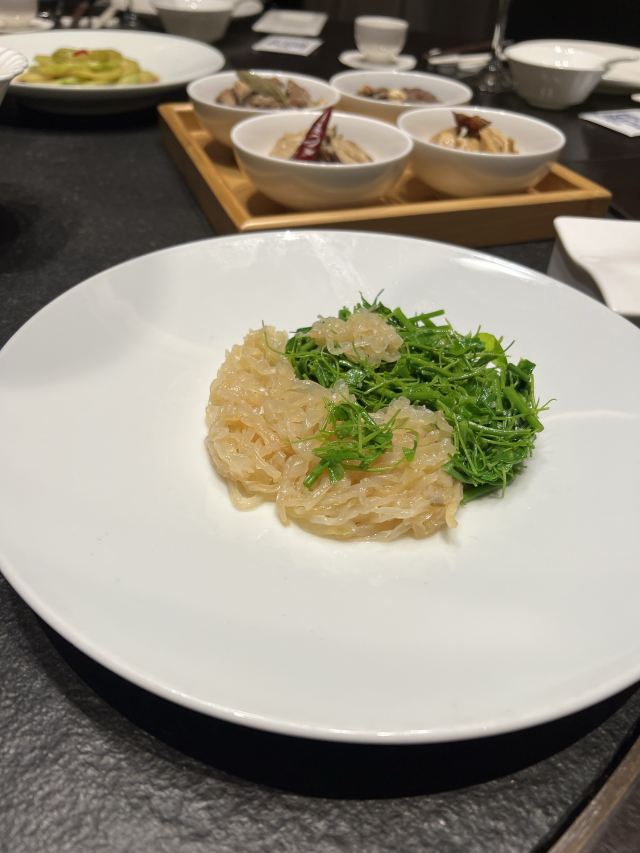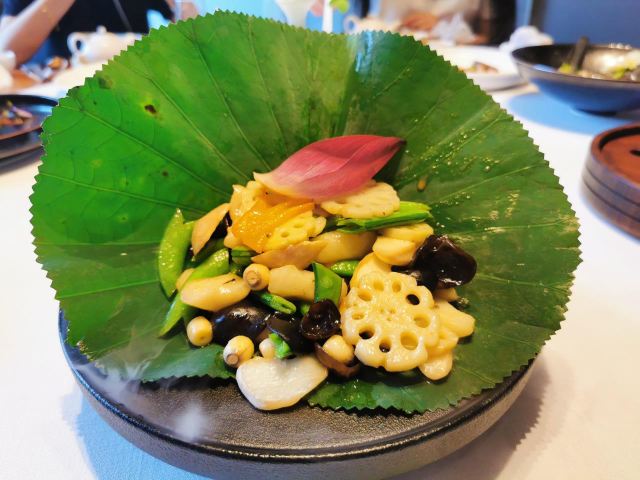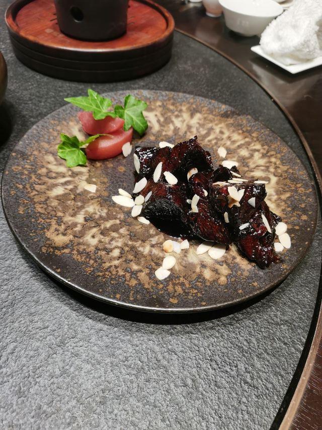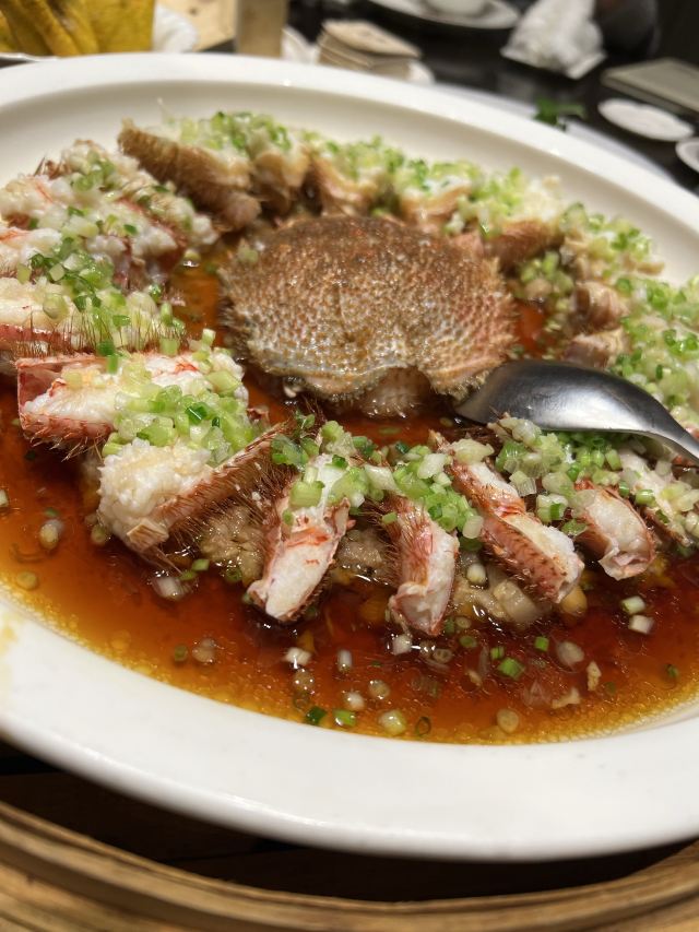 Randy膳食养生调养之道;以膳为善善行膳道 难得一家能被我打满分的店铺,尽管不是米其林不是黑珍珠,但的确很棒。 环境: 周末华大科技园没什么人,地库很空,到E区停车,E2楼上就是这家。进门就是标题这句话,点出了这家店的菜系风格,健康养生。 装修是偏中式风格,典雅大方,位置间距蛮大的,包厢带洗手间,空间比较大,虽然没有体息区,但还是属于宽敞的。 服务: 服务很棒,上菜会做讲解,换骨盆频次高,全部白手套服务,全程两位服务员全心全意服务,个别按位上的菜总计8位服务员为两桌上菜,确保食物在合适的温度上桌。 菜品 摆盛很精致,鱼香味俱全,每一个菜都不踩坑。 量很足,可以点菜也可以配菜,配的很不错。有全素菜单和荤食菜单。食材选择很注意健康,荤素搭配很合理。 这次是配的菜,量足够,吃的大家都是心满意足,特别是玫瑰油醋汁蒸红毛蟹、葱淋黄蚬子、笋菜烧大玉秃鱼 非常鲜美。 大厅有旗袍美女的琵琶演奏,还会为包房客人单独送上一曲,国风味很浓。 #上海美食 #魔都美食