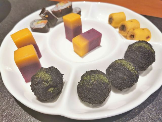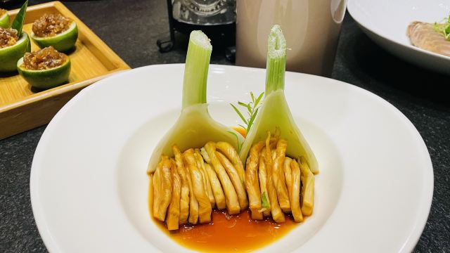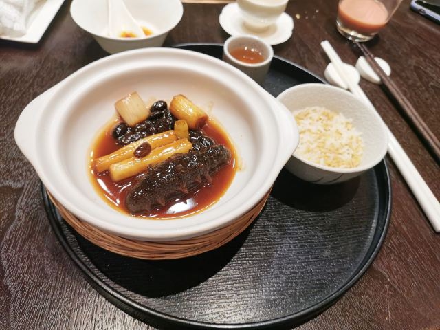 虾仁葱油饼,杏仁烧汁雪龙牛肉,铁皮枫斗功夫汤,松茸养生功夫汤,鲜虾有机葱油饼,点心,葱烧辽参组合,三文鱼刺身拼盘,竹炭有机蔬菜,深山灵芝功夫汤,原味砂锅焗中黄鱼,雪花牛肉,功夫汤,有机菜,葱烧有机辽参组合,富贵辽参