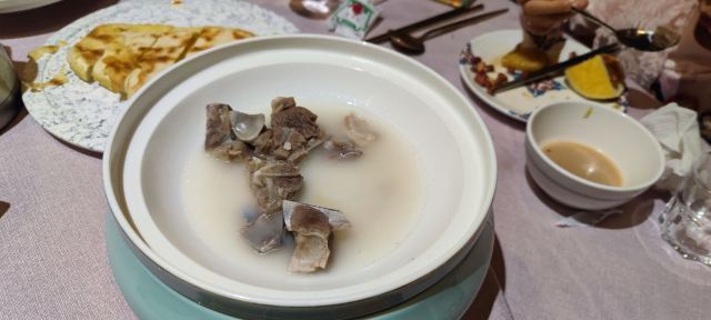 家里因为有亲戚要出远门,实在想不出什么特别有仪式感的送别,就选择了这家特色的内蒙古餐厅,用最豪爽的草原风情为挚爱的家人践行。 在点餐之余还特别单点了祝酒的环节,当蒙古歌手聊亮高亢的嗓音从帐房里传出的时候,真的仿佛置身于遗忘无际的大草原上,让人心旷神怡,家里人都赞不绝口。