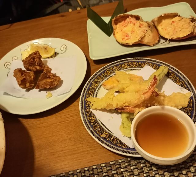 听足音“虎连坊日料”,位于延安西路2201号上海国际贸易中心一楼,是上海国际贸易中心及周边办公楼白领常来用餐的地方。他家的自助餐非常有名,这次尝试工作日午餐。网购双人套餐十道十六菜,丰富又吃得下,价格打4.4折,才198元。 🍱双人套餐菜单及简评如下: 🐋1. 刺身五点拼盘(图一、图十),包括三文鱼、金枪鱼、鲷鱼、甜虾、北极贝,新鲜,香糯; 🦑2. 珍味三种(图三),包括芥末章鱼、麻辣鲜蛤、海藻,味道浓郁,做开胃前菜正好! 🦈3. 盐烤秋刀鱼(图一、图七),烤得很香,咸味适中,鱼肉丝绺清晰,吃口不错; 🐚4. 蒜蓉火焰扇贝(图六、图十六),当日的明星菜,服务员点燃无色透明的燃料,火焰燃烧起来,漂亮又烘托气氛,扇贝现场加热,蒜香味融入扇贝,非常好吃! 🐓5. 日式炸鸡块(图八),外脆里嫩,很香哦! 🦀6. 芝士焗蟹宝(图五),以蟹背大壳为斗,用芝士焗蟹肉蟹黄,不用自己剥壳,就这么享用满满一斗,鲜香美味,太满足了! 🥦7. 天妇罗拼盘(图二),都是蔬菜,外裹层薄薄的,松脆可口,内层蔬菜仍然保持新鲜脆爽,火候不错; 🐮8. 铁板牛舌(图四),煎得很嫩,经典、好吃! 🥘9. 铁板三文鱼奶油烧(图九),这道菜第一次吃到,芝士味浓,三文鱼肉渗透了芝士,好吃,别有风味! 🍛10. 海鲜蒸蛋(图十二),以瓷茶杯蒸,颜值高,蛋嫩,加了海虾、海贝、香菇,普通的蒸蛋就上了档次了! 🥂11. 酒水选了梅酒和蓝莓汁(图十二),梅酒酸酸甜甜,才十五度,比较适合女士。 🍱总体说来,双人餐能吃到这么丰富的内容,唯有日料了。都是传统的日料经典菜,厨师做得也用心,非常满意!