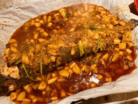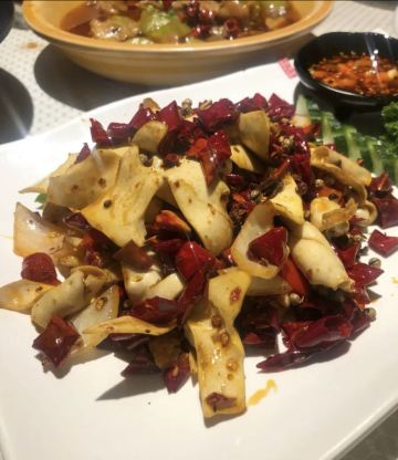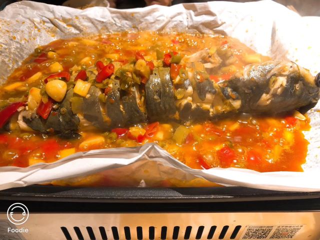 红辣椒的这家分店就在中山北路曹杨路附近,这家店的店面比较大,他们家的纸包鱼依旧很入味,服务员还会帮忙剔鱼骨。牛蛙也是满满一大盆端上来,里面的配菜和牛蛙一样好吃。