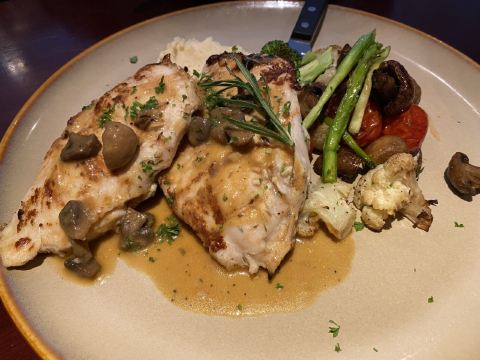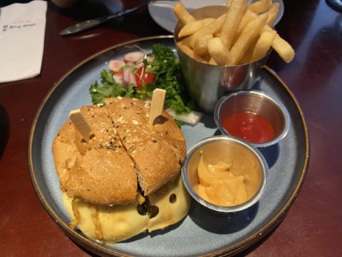 加钱换了牛排,要了5分熟。不行 肉质太老了,口感只能说一般。甜品做的比较好。番薯薯条是一如既往的好吃😋。