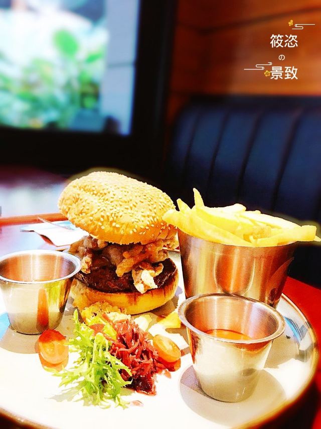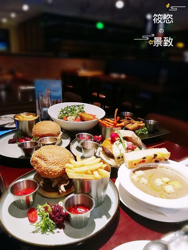蓝蛙餐厅在上海有好几个分店,表妹请我们去的是正大店,离东方明珠塔和外滩非常近,一路逛吃逛吃的很尽兴。我们点了三个不同口味的汉堡,味道都非常好,看来贵有贵的道理,真的是和平价汉堡完全不一样的,奶油蘑菇汤也是比较钟爱的,甜品很一般,太甜太腻,一整块儿都几乎剩下了,喜欢甜食的小伙伴可以来尝试,餐厅很清静,不是饭口时间人很少,消费感觉还蛮贵的,人均消费近300,但是在上海这个价格应该是属于平常吧!