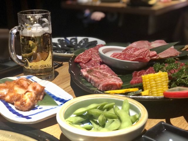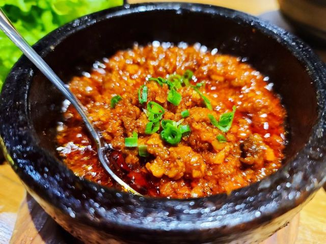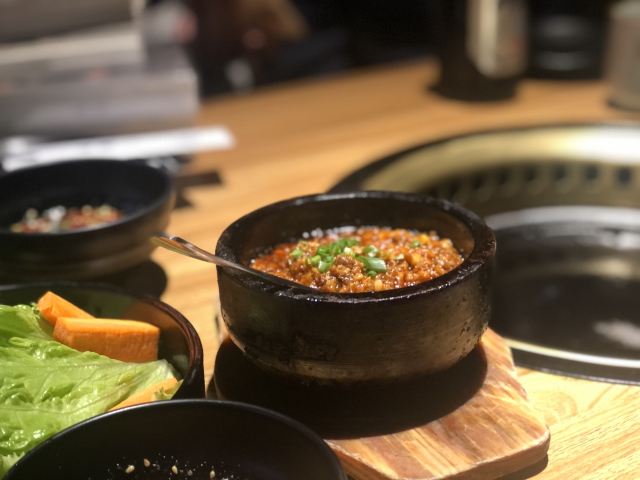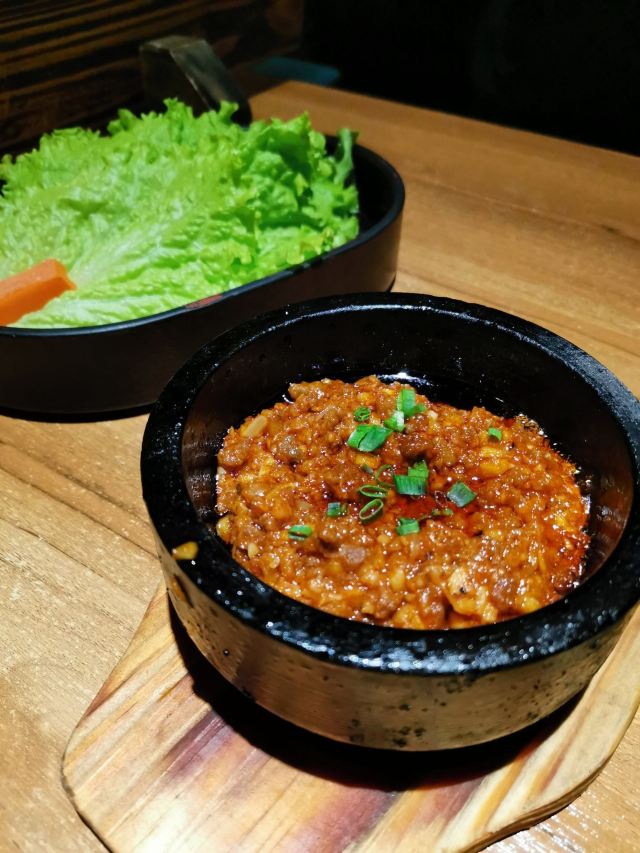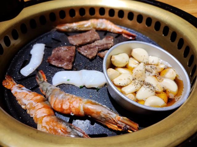 蒜香牛尾汤,海鲜饼,壶制腌制牛肉,虎丸上等横膈膜,黄油土豆烤,北海道冰淇淋,五花肉,牛肉酱包饭,黑毛猪烤肉,大蒜牛尾汤,辣味牛肠,上等横隔膜,壶渍上等牛小排,厚切特级牛舌,虎丸拼盘,牛肉糜拌饭,特上牛外脊,生菜,生拌牛肉,极品和牛,上等牛舌