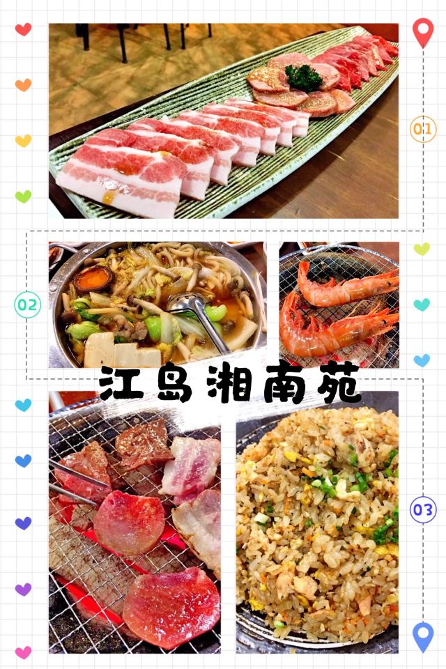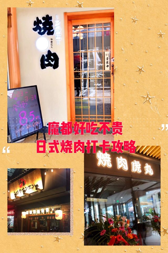 fly_me_to_the_moon不用打飞的去日本也能在魔都吃到正宗的日式烧肉~ 跟着Dorothy来拔草三家魔都高性价比的日式烧肉店吧! 店铺1:虎丸烧肉 地址:世纪汇广场5楼 推荐理由:先前在爱琴海吃过一次,因为爱琴海送了300元的代金券哈哈哈~和闺蜜晒太阳,吃烤肉,点了两款排行靠前的肉,果然肉质很棒!就是爱吃牛肉~~~ 店铺2:MOLI烧肉 地址:保利时光里B1 推荐理由:团购蛮划算的,超值和牛拼盘量好大!两个人吃刚刚好~海鲜也很新鲜,牛肉拉面味道一般般……服务态度超级好!还主动说要给停车券~环境是我喜欢的风格,满满和风。 店铺3:江岛湘南苑 地址:板泉路909号 推荐理由:朋友家附近的店,先前去她家里玩,就带我来吃~据说是日本老板,难怪口味如此地道!烤肉不错,三文鱼炒饭惊艳到我了,寿喜锅一般般…… 除了日式烤肉,牛肠锅和马肉刺身也是我的爱!先前攻略写过,就不再一一赘述啦!