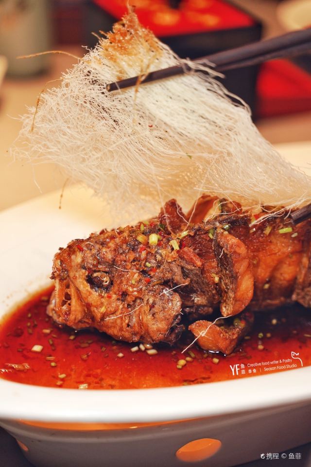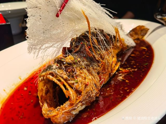 猪油帮主老波头当今,“闽东壹鱼”的生态养殖大黄鱼,经过老板陈黄鱼兄的孜孜努力,已和某某西班牙火腿及某某鱼子酱并驾齐驱,成为霸占高端餐饮食材市场的三大食材之一。 很不幸地,正因为它们出现的频率如此之高,以至于尽管相较火腿和鱼子酱,大黄鱼的吃法无疑更加富于变化,但陈黄鱼的大黄鱼,仍和另外两大品牌并列,是我最不想碰的食材前三位。 不是说食材有问题,还是审美疲劳的原因,尽管各路名厨已试遍了蒸煮煎炸。 但凡事都有例外,“掌柜”的糖醋黄鱼焙面就是例外。 首先,在高级餐厅见怪不怪的“闽东壹鱼”,出现在一家平价餐厅,本身即是一件稀奇的事情。再者,河南菜的代表作鲤鱼焙面摇身一变(主要上海人吃不惯鲤鱼),以黄鱼身登场,独沽沪上,又是一件善事。 最关键的是,这道菜经过沈宏非老师一而再,再而三的点拨和试味,前后经历近十次迭代,方成今日我餐桌上之黄鱼焙面。 鱼炸得通透,汁调得也通透,色如琥珀,亮如琉璃,甜度和酸度大胆又柔和,更兼焙面如龙须,堪称至味。 焙面犹如被面,“一被子”的陈黄鱼,被我吃了大半条。 此菜当痛饮可乐三大瓶!