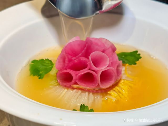繁星满天飞扬那部神剧风起洛阳,早已下播许久,剧荒的我却仿佛再也没从堪称神都的洛阳跳回现实的魔都,倒不是对悬案丛生的紧凑剧情追意难平,而是对公主生日宴请的水席,还有百里二郎口中心心念念的洛阳美食挥散不去。 幸亏,你想要的所有,上海滩全都有,从来都没让我失望过。根系中原的掌柜,早已在上海生了根发了芽,不停升级到如今的新中原菜,入不了公主府的水席,去离家不远的掌柜,尝个全新升级的河南菜,也算跟百里二郎叠了代,跟王一博同了桌,尽兴也是了得,哈哈哈,容我脑补一下场景同框。 不是第一次来,却突然有了陌生的新鲜感,原来连包房也升了级,新菜更是一个都没见过。放进竹笼挂起了澄粉的荷香古法蒸野菜,淋上了芥末汁那晶莹剔透的厨乡肉丝带底,早已上了非遗的海鲜铁锅蛋,点一份就能吃个饱的开封扣肆碗,还有那被龙虾震了场的开封煎凉粉……哪一道都仿佛有故事有传说可讲。 茅台水晶肉 好想看看没了茅台的百里二郎,吃了这道菜,还会不会不露声色的平静,茅台的醉意盎然还有蓬勃酱香,将这肉五花的咸鲜入味,勾勒得深长而又久远,水晶般的通透还有晶莹,早已述说了一切。我幸亏我有着王一博同样的幸福,百里二郎又怎么能懂。 洛阳牡丹燕菜 形似燕窝而得的名?听说源于唐代的地方名菜。萝卜丝、青瓜丝、蛋皮丝还有同样细细的蟹柳,在倾壶而下的高汤里,如同重瓣牡丹般绽放,看似清浅可人,却在白醋和胡椒的提味里,酸辣醒口,饶有韵味,怪不得连当时的一代天后武则天都爱不释口。 海钓黄鱼焙面 过分了!竟然将河里的鲤鱼,如此高调地变成了海里的黄鱼,那细如发丝的焙面,如同一条蓬松的被子,把炸得透透的闽东壹鱼盖得严丝不露,揭被才见酱色如琥珀般的真身,吃来表皮的焦香酥脆里,满口的香甜酸爽,酱味浓郁,里内的鱼肉远比鲤鱼柔嫩鲜滑,二郎你会不会后悔没出生在几百年后的现在,哈哈哈。 南宋古法金玉羹 这么美得冒着仙气儿的金玉羹,竟然问世在那么古老的年代,焦作才有的铁棍山药,这个季节才有的板栗、桂花,蓉作了泥,那一口的绵滑柔顺,那一口的奶香悠然,连此生都足矣。 再来塔牌的黄酒作陪,冬趣自来。王一博,你不来试试这当今的新中原,只跟着百里二郎风起洛阳,不遇开封,信阳,算何饕客?!哈哈哈…… #繁星寻味上海滩# #美食林旬味会 #美食林餐厅打卡 #跟着美食林榜单去打卡