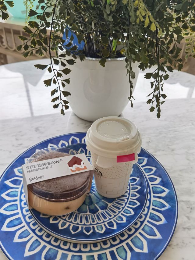 去过的 seesaw 店中,景观最好的一个,在嘉里城占据了一个2楼通道拐弯位置。背后落地窗加分拉满。一如既往的拿铁。 使用招商掌上生活可以20购30的券。还可以 seesaw 积杯数,何乐而不为呢。