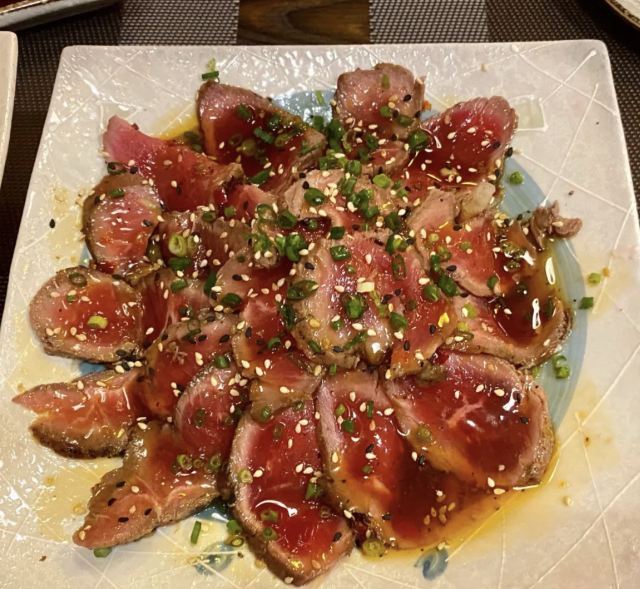三文鱼刺身,牛油果有机蔬菜色拉,乌冬面,牛舌,豪华刺身拼盘,活海胆刺身,烤鸡脆骨,生烤牛肉,甜虾刺身,烤鸡趐,烤鸡心,加州卷,牛肉寿喜锅,牛肉炒乌冬,柠檬烤秋刀鱼,寿司拼盘,鹅肝寿司,烤蟹宝,味增汤,香煎鹅肝,芥末章鱼