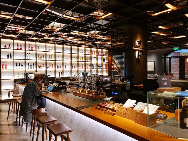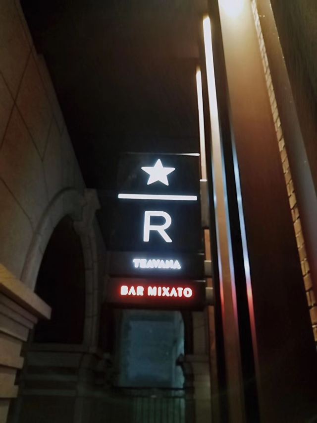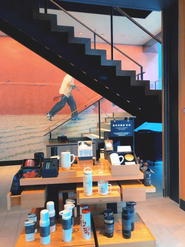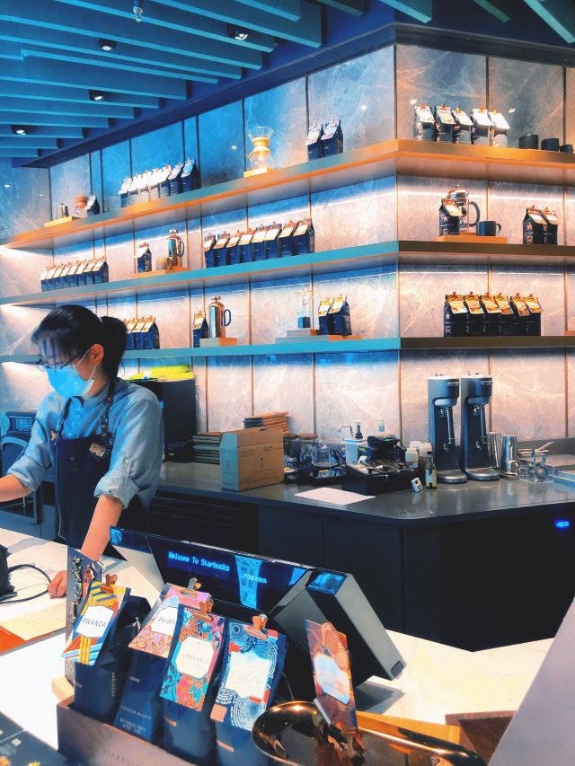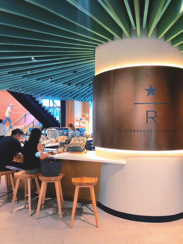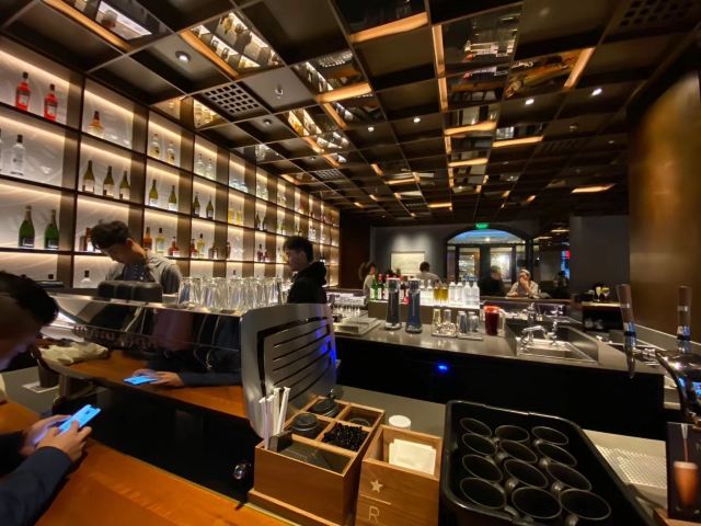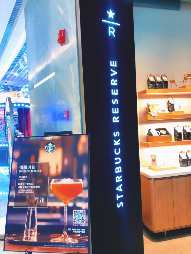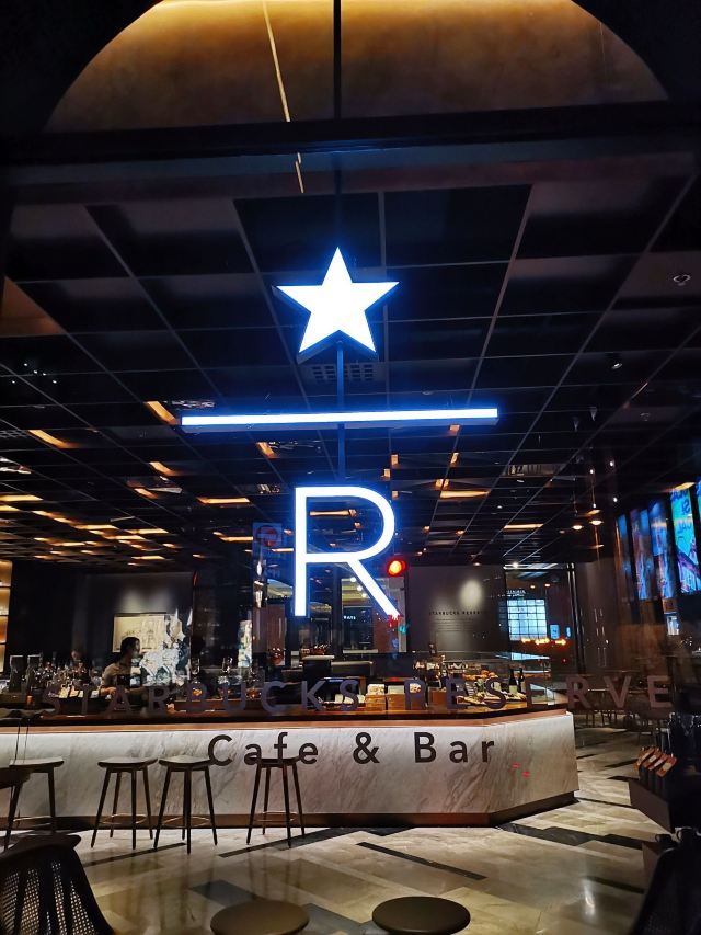 本来是吃了饭下来打算溜达一圈 倒是在不经意间被转角的一抹亮色停驻了脚步 以为是哪家新开的pub 好奇的进去瞅一眼 若不是墙上的大logo 开玩笑 你告诉我这是 星-巴-克 迎宾的是位漂亮小姐姐 喜欢这里的小姐姐 温文尔雅 态度友善 一边把我们引向吧台 一边开始缓缓介绍这家与众不同的爸爸店 尺度把握的很好 声音也好听 确认过眼神 是阿拉典型的上海小囡 想给小姐姐来张工作照 小姐姐害羞了 不想露脸成网红 那我们就尊重小姐姐 但是名字我记下了[呲牙] 门店一整层 分三个区域 吧台区 最亮眼的莫过于那堵背景墙了 啥都不用说了 都懂得 哈 前面一圈吧台围城了一个工作区 吧台部分依次为黑鹰咖啡机制作区 蒸馏咖啡制作区 点单区 面包糕点展柜区 跨过一道进口 然后是酒水制作区 商品购物区 但凡甄选店里有的 这边基本都有 一些普通门店没有的 这里也有 不过问了一下小姐姐 目前为止还没有特色的门店限定 是有一些遗憾了 不过 根据星爹一贯的调性 指不准哪天又有了呢 宾客餐饮区 星巴克的餐饮区 基本都一个调调 所以没怎么拍 倒是墙上的几幅画更有点意思 讲真面积虽不如工坊店 炫酷程度五颗星 伙伴评级五颗星 乘目前人还不多 赶紧去打卡吧