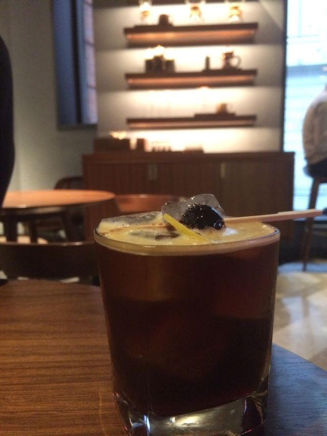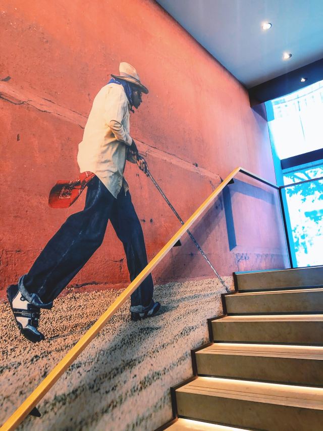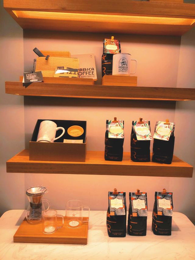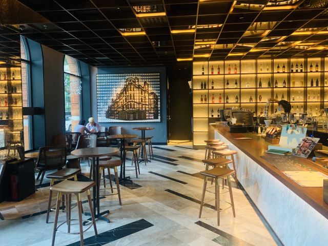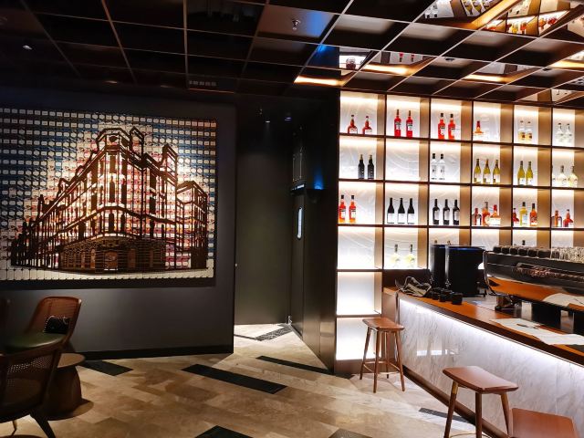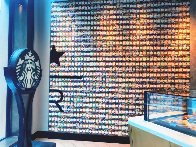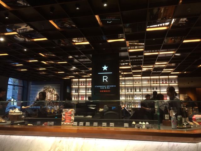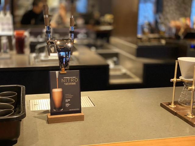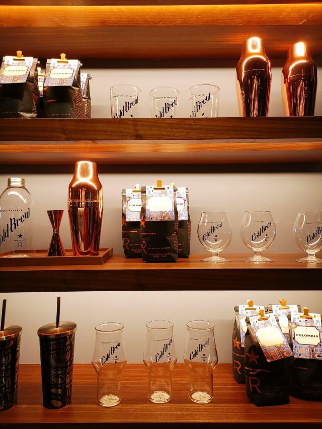 本来是吃了饭下来打算溜达一圈 倒是在不经意间被转角的一抹亮色停驻了脚步 以为是哪家新开的pub 好奇的进去瞅一眼 若不是墙上的大logo 开玩笑 你告诉我这是 星-巴-克 迎宾的是位漂亮小姐姐 喜欢这里的小姐姐 温文尔雅 态度友善 一边把我们引向吧台 一边开始缓缓介绍这家与众不同的爸爸店 尺度把握的很好 声音也好听 确认过眼神 是阿拉典型的上海小囡 想给小姐姐来张工作照 小姐姐害羞了 不想露脸成网红 那我们就尊重小姐姐 但是名字我记下了[呲牙] 门店一整层 分三个区域 吧台区 最亮眼的莫过于那堵背景墙了 啥都不用说了 都懂得 哈 前面一圈吧台围城了一个工作区 吧台部分依次为黑鹰咖啡机制作区 蒸馏咖啡制作区 点单区 面包糕点展柜区 跨过一道进口 然后是酒水制作区 商品购物区 但凡甄选店里有的 这边基本都有 一些普通门店没有的 这里也有 不过问了一下小姐姐 目前为止还没有特色的门店限定 是有一些遗憾了 不过 根据星爹一贯的调性 指不准哪天又有了呢 宾客餐饮区 星巴克的餐饮区 基本都一个调调 所以没怎么拍 倒是墙上的几幅画更有点意思 讲真面积虽不如工坊店 炫酷程度五颗星 伙伴评级五颗星 乘目前人还不多 赶紧去打卡吧