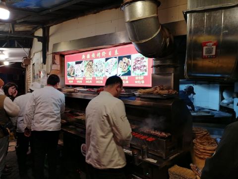 牛肉锅贴,新疆羊肉串,烤包子,新疆大盘鸡,新疆手抓肉,手工酸奶,新疆手抓饭,新疆拌面,羊肉汤,馕饼,羊肉串,牛肉煎包,热气羊肉,大盘羊肉,羊杂汤,羊肉包,锅贴,牛肉汤,肉夹馍,牛肉荠菜混沌,酱烧牛肉面,油饼,手抓羊肉,羌饼,攒劲的干煸炒面,鸡肉炒米粉