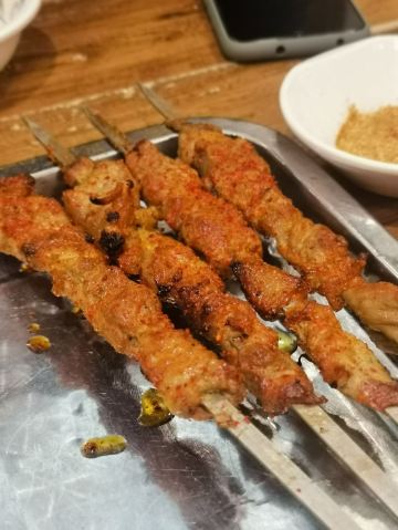 跟朋友小搓一顿, 本来约在贯贯吉的。 到了以后发现大排长龙, 七点多的时候拿了号, 前面还有十几桌, 哎,曾经的宝藏餐厅啊,无奈🙄 于是选了隔壁的这家同样是羊肉店, 装修风格算是满满的豪华新疆味了~ ✅新疆羊肉串 很棒,没毛病,正宗的新疆羊肉~ ✅新疆手抓肉 肉质还不错,不膻,比较嫩, 蘸着特制的辣椒油和孜然盐粉蛮好吃的! 只是相比贯贯吉的切成条块不同, 这里的羊肉都比较大块, 总体还是会更喜欢隔壁吧。 ✅烤包子 第一次吃新疆烤包子, 外层包子皮很香,里面的羊肉馅也不错, 推荐必点哦~ ✅线椒爆羊肚 不错的下酒菜呀~ 🉑白灼罗马生菜 中规中矩, 只是为了食肉的同时来点绿叶菜点的。 👉乌苏啤酒 要了红乌苏, 也不知道白和红有啥区别, 盲点的哈哈哈哈。 人均也要一百三左右了, 上菜速度很快。 如果隔壁不排队, 还是会去曾经的宝藏小店👉贯贯吉。 🍽【美食攻略】 📍详细地址:浙江中路70号 🚗交通攻略:地铁1、2、8号线人民广场站 🕙营业时间:9:30~23:00 💰人均消费:130