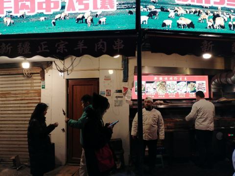 三十五秒十三分跟朋友小搓一顿, 本来约在贯贯吉的。 到了以后发现大排长龙, 七点多的时候拿了号, 前面还有十几桌, 哎,曾经的宝藏餐厅啊,无奈🙄 于是选了隔壁的这家同样是羊肉店, 装修风格算是满满的豪华新疆味了~ ✅新疆羊肉串 很棒,没毛病,正宗的新疆羊肉~ ✅新疆手抓肉 肉质还不错,不膻,比较嫩, 蘸着特制的辣椒油和孜然盐粉蛮好吃的! 只是相比贯贯吉的切成条块不同, 这里的羊肉都比较大块, 总体还是会更喜欢隔壁吧。 ✅烤包子 第一次吃新疆烤包子, 外层包子皮很香,里面的羊肉馅也不错, 推荐必点哦~ ✅线椒爆羊肚 不错的下酒菜呀~ 🉑白灼罗马生菜 中规中矩, 只是为了食肉的同时来点绿叶菜点的。 👉乌苏啤酒 要了红乌苏, 也不知道白和红有啥区别, 盲点的哈哈哈哈。 人均也要一百三左右了, 上菜速度很快。 如果隔壁不排队, 还是会去曾经的宝藏小店👉贯贯吉。 🍽【美食攻略】 📍详细地址:浙江中路70号 🚗交通攻略:地铁1、2、8号线人民广场站 🕙营业时间:9:30~23:00 💰人均消费:130