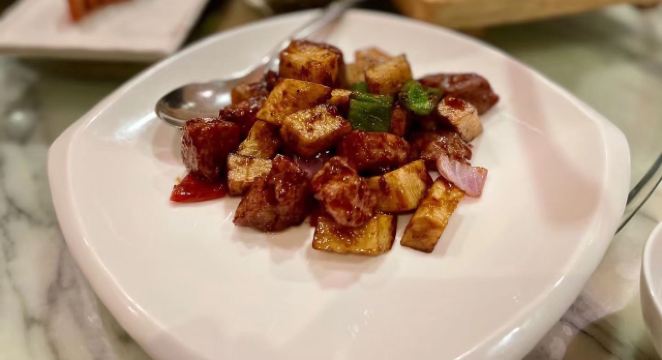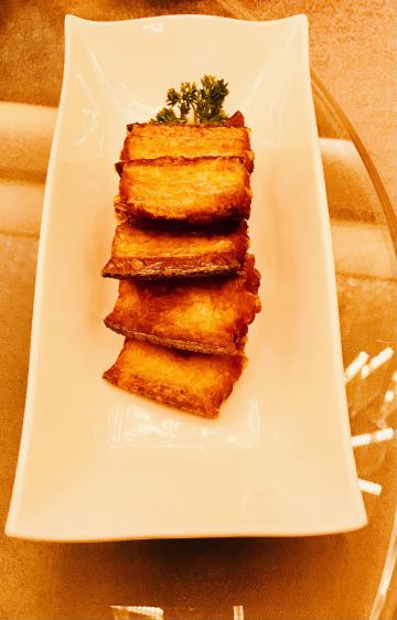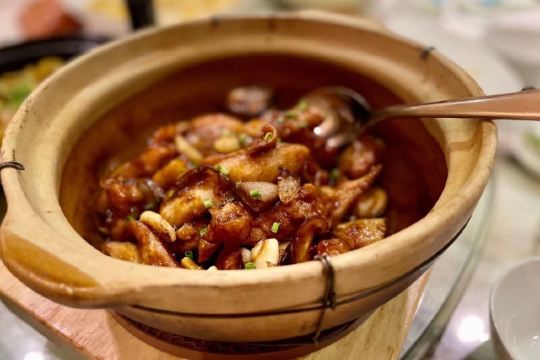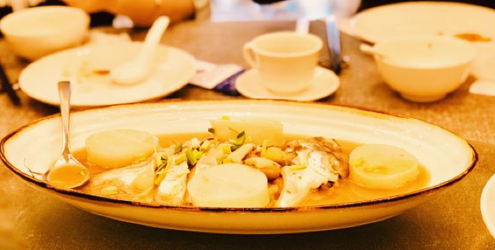 蛋花食游记公司团建,选了这家藏身于扬子江酒店的中餐厅。5星级酒店的环境肯定没话说,门面很大,装修典雅奢华. 叉烧,广东的传统名菜。这家店味道很正,上海的的叉烧大多是瘦肉,肉太柴,没什么口感,这家是肥叉,肥瘦个半,油脂充分挥发出来了,色泽鲜明,油光发亮,香味四溢。吃不出肥肉的感觉,肉质软嫩多汁,混合着油脂的香味,太赞了 蒜蓉蒸元贝,很入味,元贝很新鲜,咬上去肉质Q弹,层次感分明,配合着粉丝一起吃,鲜香味醇厚,超级满足 萝卜牛腩汤,今晚的意外发现,萝卜酥软多汁,牛腩的鲜香嫩滑,点睛之笔是里面的炸蒜和芹菜,把汤的鲜度上升了一个档次,很棒,学习到了,回家自己也可以试试 另外他家的点心和甜品都做的不错,过来吃个下午茶感觉也不错。总体来说很棒的粤菜馆,点的菜都挺好吃的,没有踩雷,环境也好,下次有机会再来