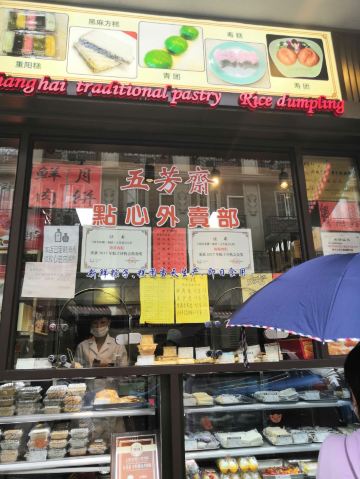 五芳斋在大家的印象中大概就是嘉兴粽子,最多也就是个快餐连锁了,而这家位于云南中路美食街的五芳斋旗舰店令人意想不到,各种熟食,各种糕点,令人眼花缭乱,还可以堂食,有点像光明忳。