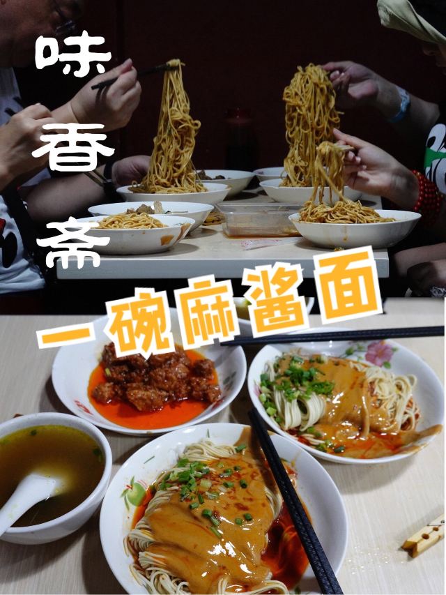 凹凸曼和小伙伴魔都探店|弄堂面馆的佼佼者 🌈推荐店铺:味香斋 🍜推荐理由:从小吃到大的麻酱辣肉面 📍店铺位置:雁荡路14号 🕙营业时间:6:30~21:00 ▪️推荐小吃: 「麻酱面」,「小牛汤」,「辣肉面」 🔸入店理由: 1⃣️从小吃到大的麻酱面,真的没什么好说了。 2⃣️店小,等位是常态,除非是一大早过去。 3⃣️阿姨们的服务态度真的很一般。 4⃣️「麻酱面」12/碗,淋得麻酱蛮多的,不过一上来不是很容易拌开,而且,真心的,面经常会有点坨,建议加「辣肉盖浇」17/份,配合里面的辣油会好拌一点。 5⃣️「小牛汤」10/碗,小汤碗一碗,量不大,胜在原汁原味,还有几片牛肉。 🔺其实要说多好吃也不至于,大概多少还有点上海弄堂面店的情怀,再加上这个地段,一般淮海路逛街逛到一半都会光顾下。