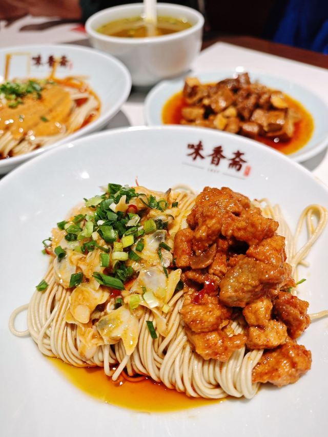 Wei Xiang Zhai (Yandang Road)味香斋真是从小吃到大了,雁荡路的老店还真的是老味道,就是店面有点小饭点坐不下,现在也开了好多连锁,味道也不差,最经典的还是|麻酱面^吧,但是吃到后面会有点腻 辣肉和辣酱都中规中矩,|小牛汤^味道还不错,店里不支持微信支付支付宝可以。