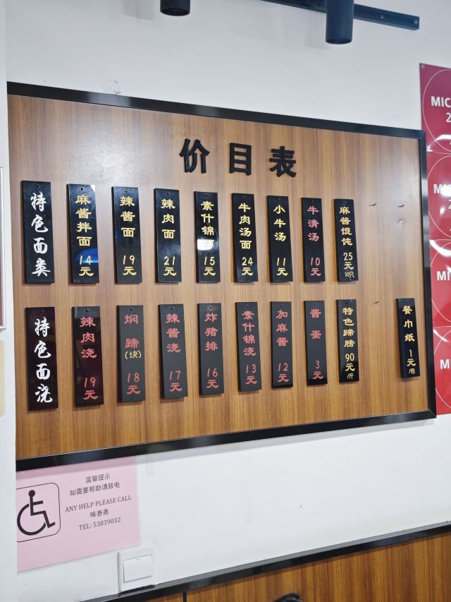炸猪排,麻酱面,麻酱捞面,辣肉面,牛肉汤,素什锦交,麻酱拌面加辣肉,排骨年糕,辣酱拌面,小牛肉汤,辣肉,素什锦面,排骨,辣肉浇头,茄汁大排,冷面,素什锦浇头,辣酱,辣酱浇头,香菇面,麻酱面加素交,葱烤大排,腰花面,麻酱面!小牛汤!,麻酱面配小牛汤,辣肉交,焖蹄,辣酱面,牛肉面,红烧大排