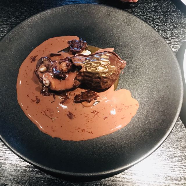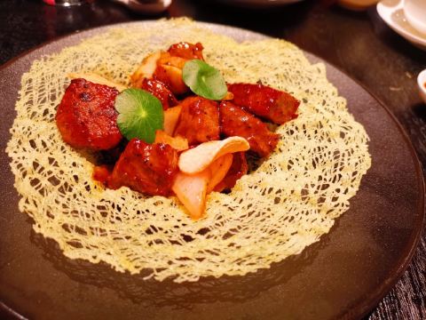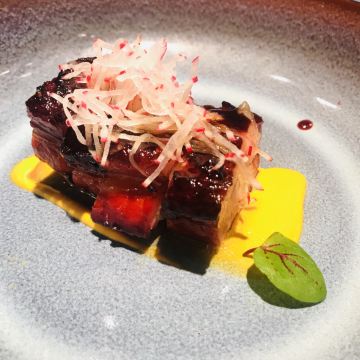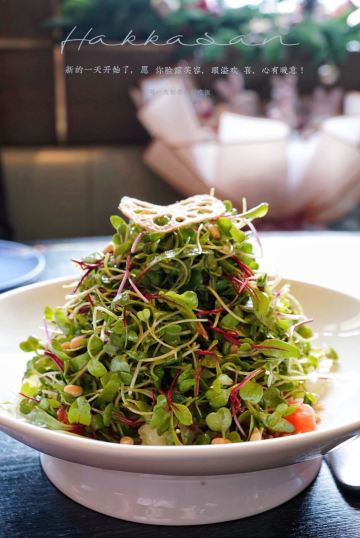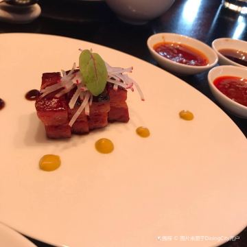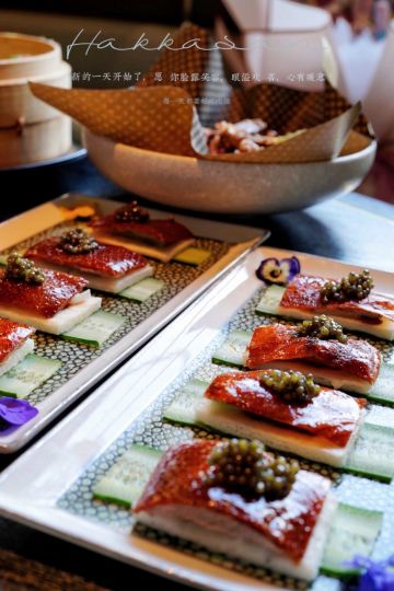 Hakkasan久闻大名的哈卡桑,单单外滩18号这几个字就足够吸引人了,找了个时间和朋友一起前来打卡 鱼子酱片皮鸭^招牌特色,味道是真的过关,鱼子酱配着片皮鸭,一下把档次提升,每一口都是享受,价格688当然也是很哇塞的 四式点心拼做得很精致,五彩缤纷的外形之外,味道也是很不错的 巧克力花生焦糖巴菲一道甜品,甜而不腻,同样是精致的外表下也有着足够过关的味道 在这种地方吃饭,真的就不要去寻求性价比,带着开心的消费心情享受一下美食即可