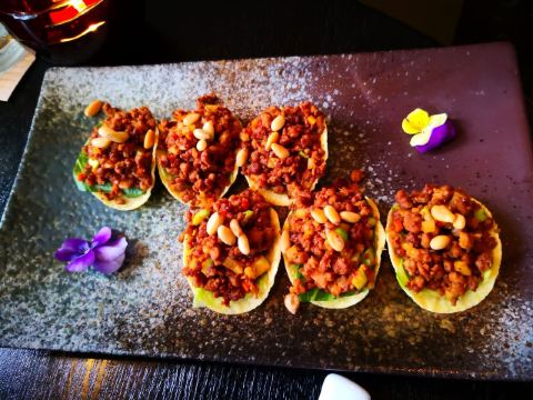 想起来就写一点的牛大爷2019年餐厅周赢家版晚餐-288套餐+10[%]服务费 是餐厅周的最后一天4月21日来的,由于定的很晚,只有晚餐了。其实午餐和晚餐的唯一区别就是主食不一样,午餐138元,感觉性价比就真的爆表了~ 【口味】从前菜,小吃,到主食等等,都觉得还蛮好吃的,但是这个最后的甜点太赞了~ 餐前小点- 算分子料理吧,里面qq的像黄桃果冻,上面咸咸的不知道是什么。一口就下去了 点心三部曲-和牛饺,笋尖鲜虾饺,鱼子烧卖 这三个都还不错,用料挺足的,配上了三种酱料(辣椒酱,辣椒油?还有酱油)虽然平时都习惯用醋hh 但这次吃起来也不错 鲜鱿色拉-我觉得这个还蛮特别的,第一次吃到鱿鱼炸成干的色拉,配合蔬菜吃起来很香~ 蒜子黑椒牛仔粒-主食,这个大约有5.6粒,牛肉味道还可以,很嫩。但是装盘很小,是套餐的关系吧哎。 红烧火楠板栗煲-主食,这个真的不怎么样呀,肉咬起来,肥肉和瘦肉都感觉没有做到位。栗子和洋葱也傻傻分不清。不如牛仔粒!! 野菌炒毛豆-中规中矩,仿佛吃到了一些松露的口感,不知道是不是错觉。 生抽火鸭丝炒面-就是炒面,别想太多。 香草蛋奶-从摆盘到口味都想给100分!有些甜但不腻,布丁+黄桃+奶油+酥脆的鸟巢的口感都很棒~ 巧克力花生-这个摆盘也很有创意,是一个巨大的花生。上来之后浇了巧克力酱,外壳会融化。感觉吃起来真的非常甜,喜欢甜食不怕腻的小伙伴可以入~ 【环境】没有坐到江景区的位置,只坐在了里边。总体来说环境很好,吧台,走廊,洗手间,都比较有格调~ 【服务】服务还不错,基本桌边一定会有2-3个人。会主动帮你铺三角巾,东西掉到桌上也会主动擦掉 等等。