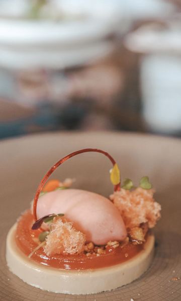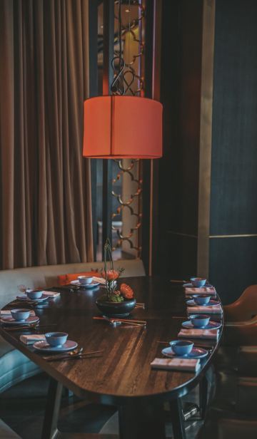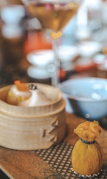 餐厅设计精致大气,深色主调贴合了浦江的历史感,金属线条和皮革座椅皆体现了摩登魅力。菜式凸显了中西合璧的创意,汲取伦敦当代烹饪艺术精髓,结合传统粤菜予以全新演绎,透露出新颖的前卫概念。
