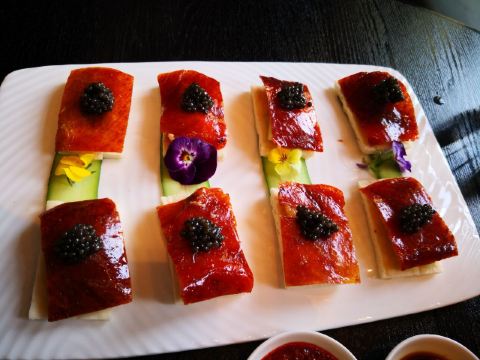 鱼子酱片皮鸭,香槟汁焗银鳕鱼,咖喱汁虾球,香酥鸭沙律,黑松露和牛沙律,黑菌明炉烧鸭,鱼子酱翡翠烧卖,鱼子酱片皮鸭两吃,四式点心拼,蒜子黑椒牛仔粒,椰子冰淇淋,香椰冰淇淋蛋糕,莲藕炒芦笋,龙虾麻婆豆腐,抹茶柚子,椒盐鲜鱿,苹果派,甜品,茶香熏乳骨,周末brunch,茉莉花茶香豉油鸡,腰果芭菲,醉鸡鲍鱼海蜇,琵琶鸦,鹅肝饺,脆皮乳猪,酸辣汤