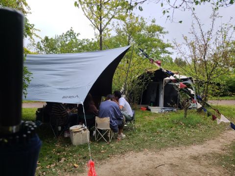 🍡激动人心的炮台湾烧烤大会顺利举行 2022-10-4 之前来过一次炮台湾烧烤的小伙伴强推并且组织,好嘞,走一个,烧烤就是要人多才热闹好玩,好不容易凑到这么多人😅 上一次的这种规模烧烤,还要追溯到12345679几十年前了😂那一次是在森林公园,搞得大家狼狈不堪,光生个火就生了一个小时,所以这次大家都心有余悸担心生活问题,群主很傲娇回答,炮台湾是有服务的,火是生好端上来的😄 【环境】 根据群主的攻略,从北门进(车停在零点广场非常近),进门几步路就能看到烧烤区指示牌,下台阶就马上看到了欢乐的海洋,一整片欢乐的海洋😂烧烤区域其实不大,大家挤在一起烟火缭绕,目测大概10个大桌烧烤台左右(大桌=2个小桌,按人数) 【环境】 烧烤台上面有固定的顶,小雨也是无所谓的,譬如4号就是间歇性会零星小雨,烧烤台旁边还有一个水斗,这个贴心了,洗手间也很近,干净肯定是谈不上,在公园洗手间里属于过得去 【服务】 提供碳,不够再加的话应该是加钱的,因为艾小米是包了10点到12点,12点到14点两场,所以中途加了一次碳是第二场里包含的,基本应该不用加,因为发现碳用完的时候差不多就是正好两个小时 【服务】 中途可以喊人过来换烧烤架,也会有人不停过来整理收拾垃圾运走,整个区域打理得非常干净,还有上海人阿姨,很客气,因为不能及时加碳过来还连连打招呼,后来看到第一场别人离场,阿姨擦是烧烤台认真额要命,怪不得烧烤台一点都不油腻 烧烤台配的凳子有点少,一张大桌子是适合8人的,只有6个大的石头凳子,当然凳子很大,不是肥仔的话,两个人拼一个凳子倒也挺开心 一部分串串是TB买的,可以直接送到烧烤区,具体不清楚,都是群主操办的,其他的都是各自带来的,原来烧烤料理并不是那么简单,把生的放上去就好了,这一次那对烧烤小能手让艾小米大开眼界啊🤪震惊了世界 价钱基本就是森林公园翻倍,当然环境服务什么的也是翻倍,这个就自己选了 8人大桌两个烧烤炉,两个小时一场330,包了4个小时一共660,不过刚刚在研究点评,是可以续费啊,实际昨天差不多是3个小时多一点点,续费一个小时160,三个小时490也是不错 💰所以,艾小米和她的小伙伴,在烧烤区就是消费了场地费用660 很美好的一天鸭🌦