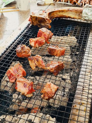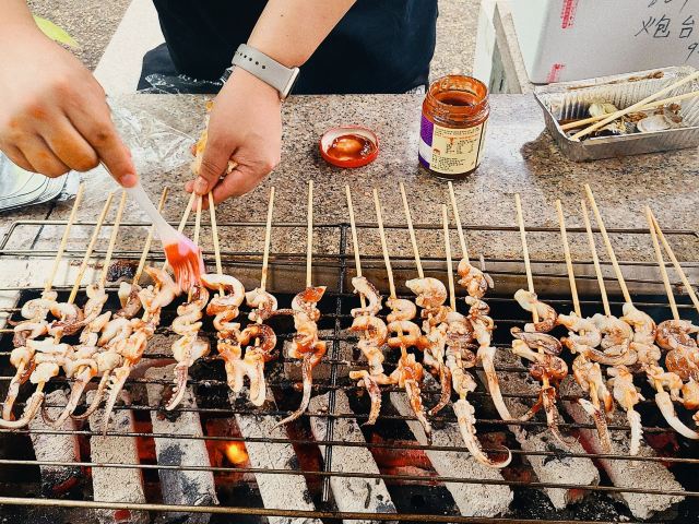 amydog🍡激动人心的炮台湾烧烤大会顺利举行 2022-10-4 之前来过一次炮台湾烧烤的小伙伴强推并且组织,好嘞,走一个,烧烤就是要人多才热闹好玩,好不容易凑到这么多人😅 上一次的这种规模烧烤,还要追溯到12345679几十年前了😂那一次是在森林公园,搞得大家狼狈不堪,光生个火就生了一个小时,所以这次大家都心有余悸担心生活问题,群主很傲娇回答,炮台湾是有服务的,火是生好端上来的😄 【环境】 根据群主的攻略,从北门进(车停在零点广场非常近),进门几步路就能看到烧烤区指示牌,下台阶就马上看到了欢乐的海洋,一整片欢乐的海洋😂烧烤区域其实不大,大家挤在一起烟火缭绕,目测大概10个大桌烧烤台左右(大桌=2个小桌,按人数) 【环境】 烧烤台上面有固定的顶,小雨也是无所谓的,譬如4号就是间歇性会零星小雨,烧烤台旁边还有一个水斗,这个贴心了,洗手间也很近,干净肯定是谈不上,在公园洗手间里属于过得去 【服务】 提供碳,不够再加的话应该是加钱的,因为艾小米是包了10点到12点,12点到14点两场,所以中途加了一次碳是第二场里包含的,基本应该不用加,因为发现碳用完的时候差不多就是正好两个小时 【服务】 中途可以喊人过来换烧烤架,也会有人不停过来整理收拾垃圾运走,整个区域打理得非常干净,还有上海人阿姨,很客气,因为不能及时加碳过来还连连打招呼,后来看到第一场别人离场,阿姨擦是烧烤台认真额要命,怪不得烧烤台一点都不油腻 烧烤台配的凳子有点少,一张大桌子是适合8人的,只有6个大的石头凳子,当然凳子很大,不是肥仔的话,两个人拼一个凳子倒也挺开心 一部分串串是TB买的,可以直接送到烧烤区,具体不清楚,都是群主操办的,其他的都是各自带来的,原来烧烤料理并不是那么简单,把生的放上去就好了,这一次那对烧烤小能手让艾小米大开眼界啊🤪震惊了世界 价钱基本就是森林公园翻倍,当然环境服务什么的也是翻倍,这个就自己选了 8人大桌两个烧烤炉,两个小时一场330,包了4个小时一共660,不过刚刚在研究点评,是可以续费啊,实际昨天差不多是3个小时多一点点,续费一个小时160,三个小时490也是不错 💰所以,艾小米和她的小伙伴,在烧烤区就是消费了场地费用660 很美好的一天鸭🌦