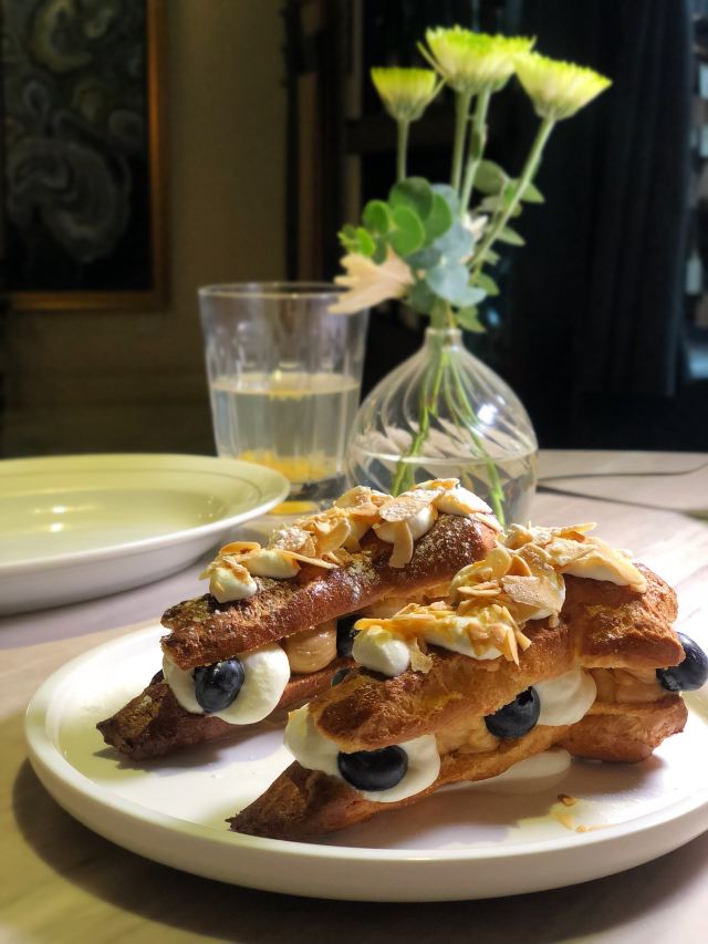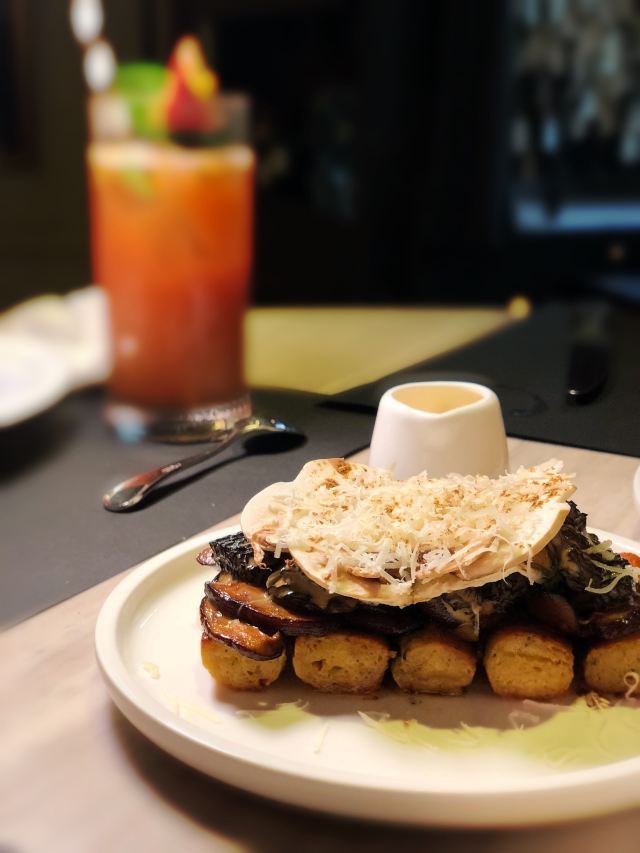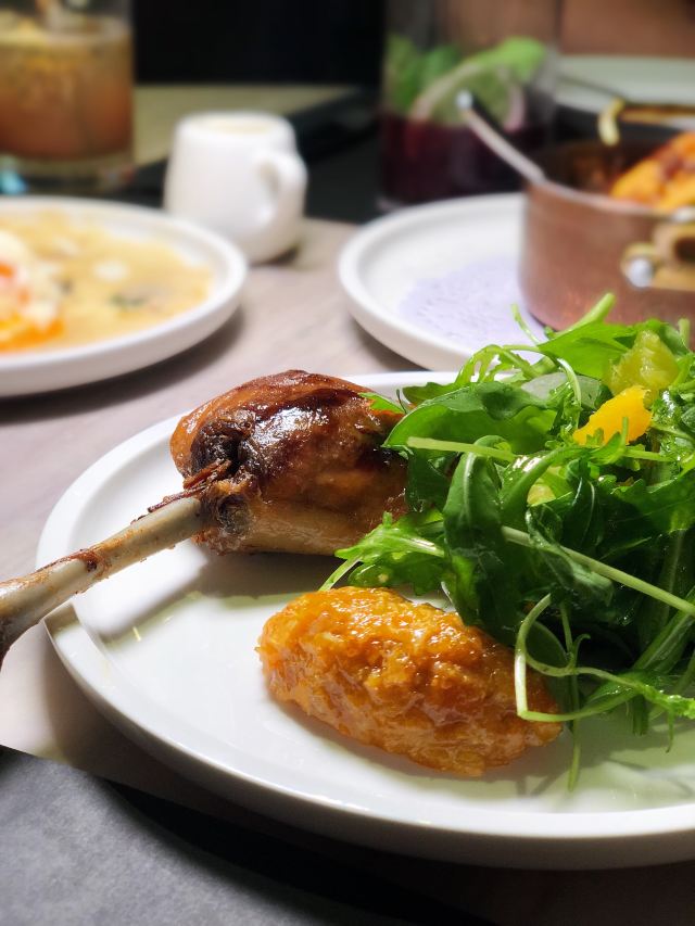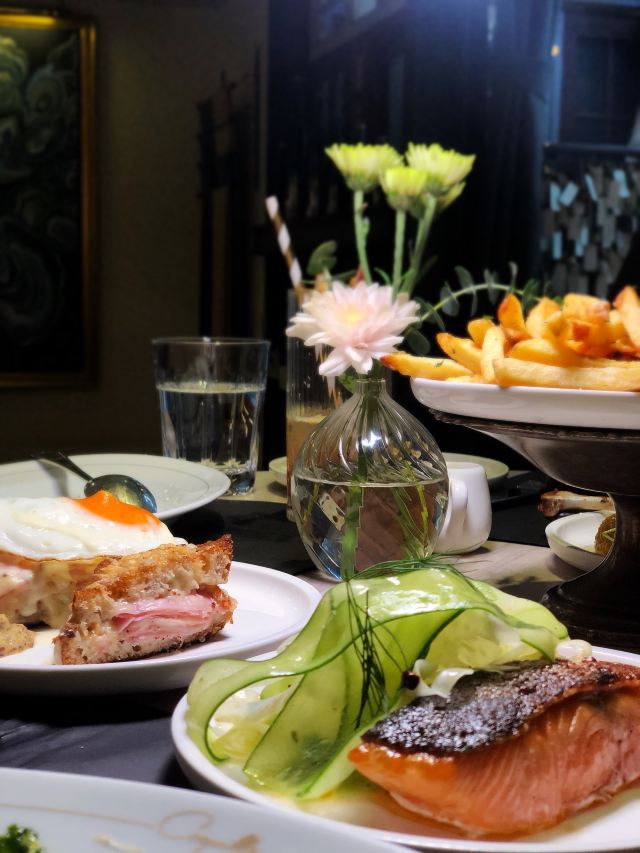 轻轻的一个蚊法式芝士三明治 顶着完美煎蛋出场,偏硬的酸面包嚼起来嘎嘣脆,格鲁耶尔干酪、火腿片、芥末、奶油酱汁,多层次的咸香瞬间征服味蕾。 松露炒蛋 扑鼻的松露香气,蛋体湿润滑嫩,芝士奶油的奶香浓醇,帕玛森芝士脆片风味浓郁。 豌豆藜麦沙拉 厚厚的多种芝士刨片层层叠叠,藏着一颗生蛋黄,下面是豌豆拌藜麦,软嫩中夹杂着沙沙的脆感。 法式芝士泡芙班尼迪克蛋 泡芙壳代替常见的松饼真是神来巧思! 泡芙酥香松脆,夹入水波蛋和法国火腿,搭配稠厚的香料荷兰酱,讨巧有趣! 焦糖鹅肝布丁 壳里对我最大的诱惑,之前就夸过,这次搭配酸甜的柑橘酱,也是很好吃的。 油封鸭腿 教科书式的出品,表皮香脆,油脂酥酥地化在口中,鸭肉软嫩多汁。嚼得出橙皮颗粒感的柑橘酱平衡油润,清甜解腻。 蟹肉饼 蟹肉压成厚实的肉饼,炸出一层酥香的薄壳,淋上蛋黄酱再挤点柠檬汁,简单粗暴的鲜香!