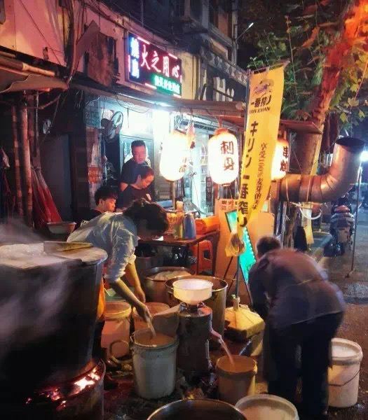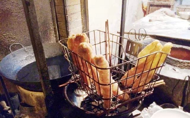 夫妻两人很好动作十分麻利,大饼、油条、糍饭、咸浆等是最老上海的传统味道!豆浆是现煮的,用的是煤球,味道浓郁,来两根脆脆的油条放在里面一起吃,超赞!