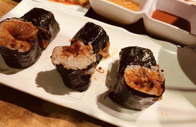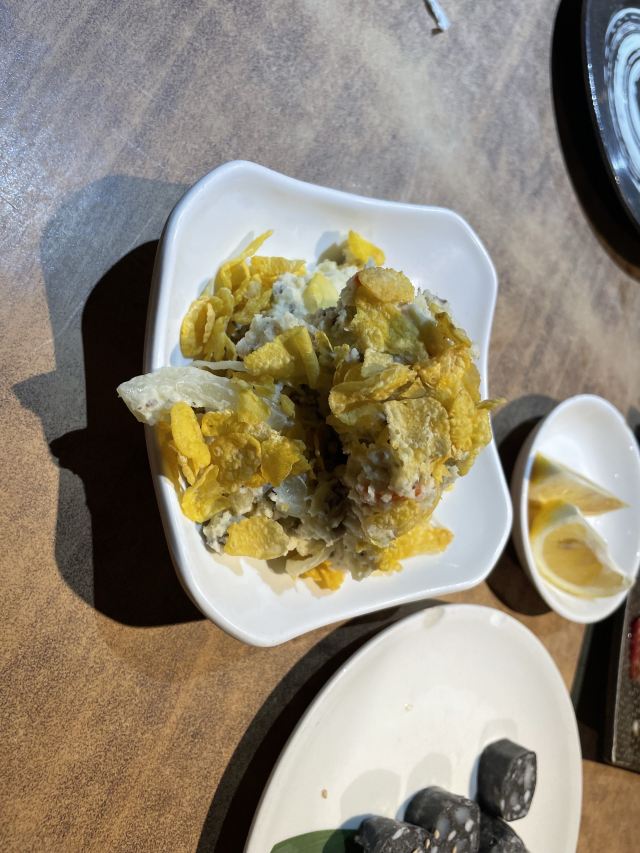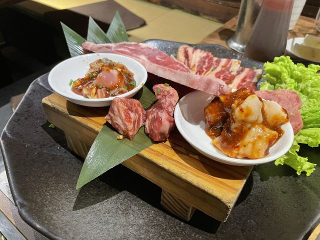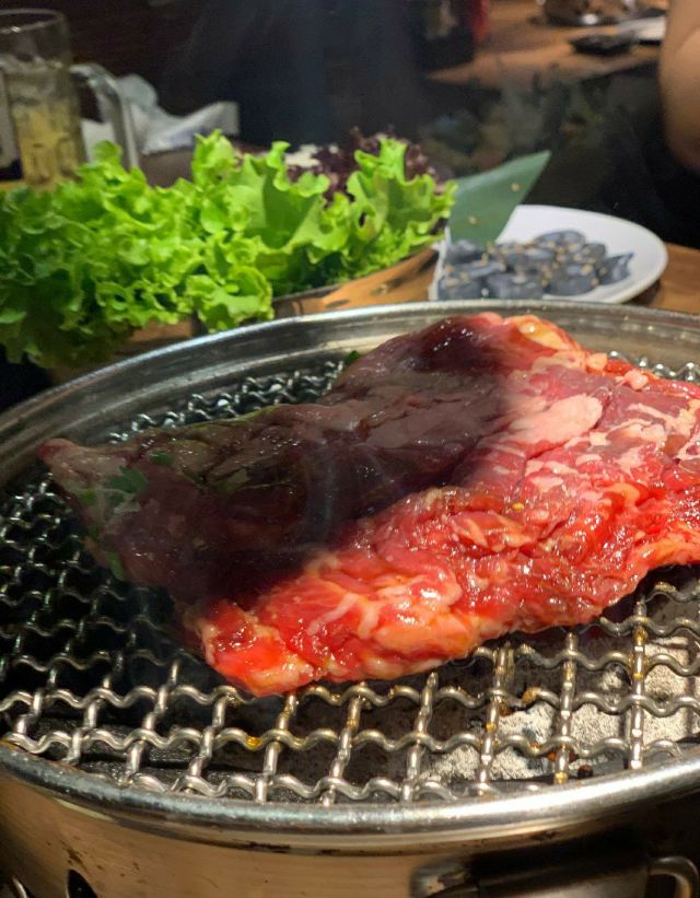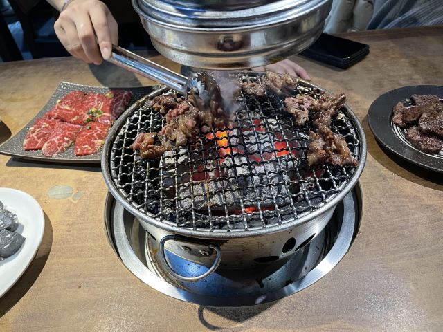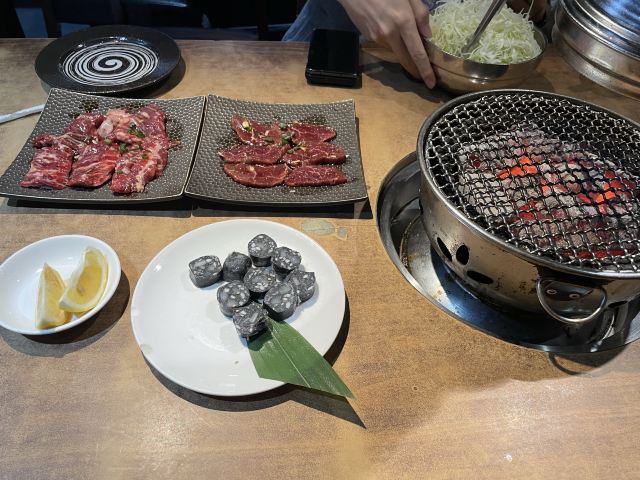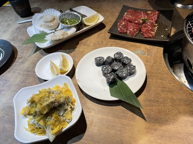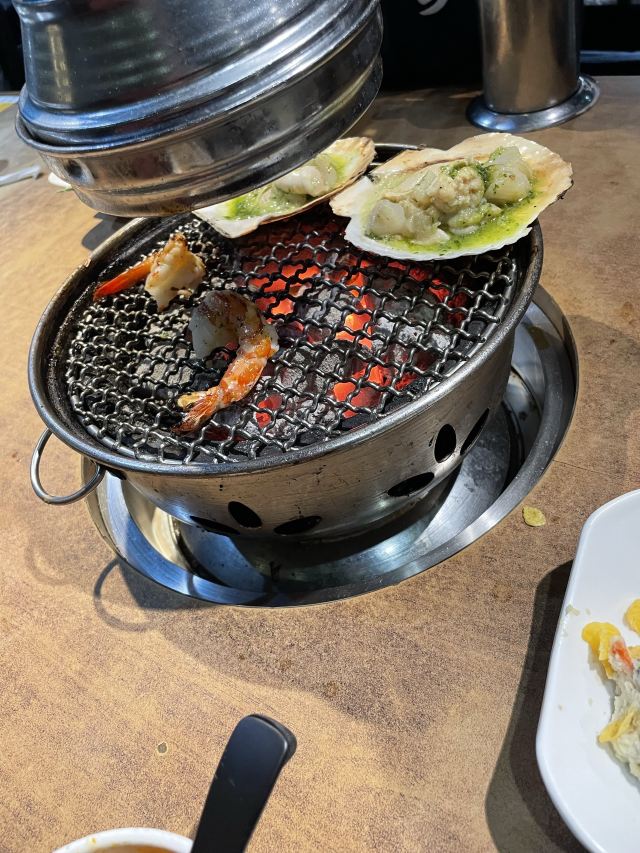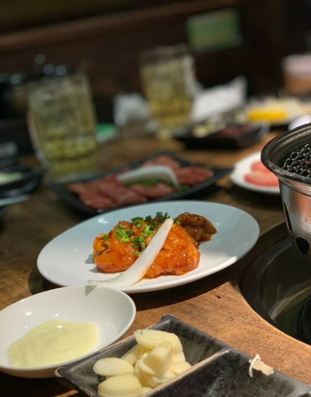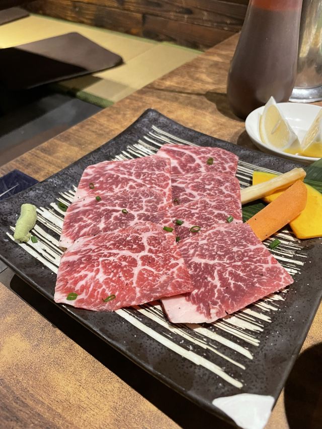 周末和同事突然来了兴致打算一起去吃日料,于是就选了这家烤肉店。进来之后发现生意超级好,因为我们没预约所以要稍微等一段时间(大家要来的话还是要提前预约)。我们运气较好有一桌客人取消预约了于是轮到我们了,点了他们家的特色牛里脊,雪花肉还有牛隔膜。肉质出乎预料地新鲜,有有肉本身的香味,咀嚼起来也非常嫩。另外还点了一点海鲜,还有服务员小姐姐一直帮忙烤,吃得非常开心。