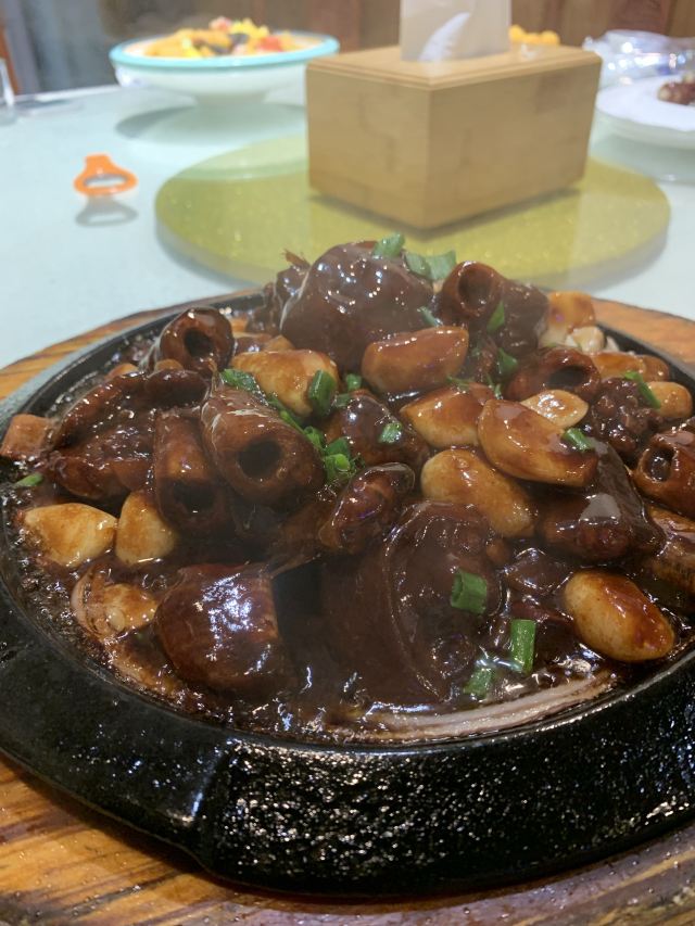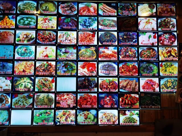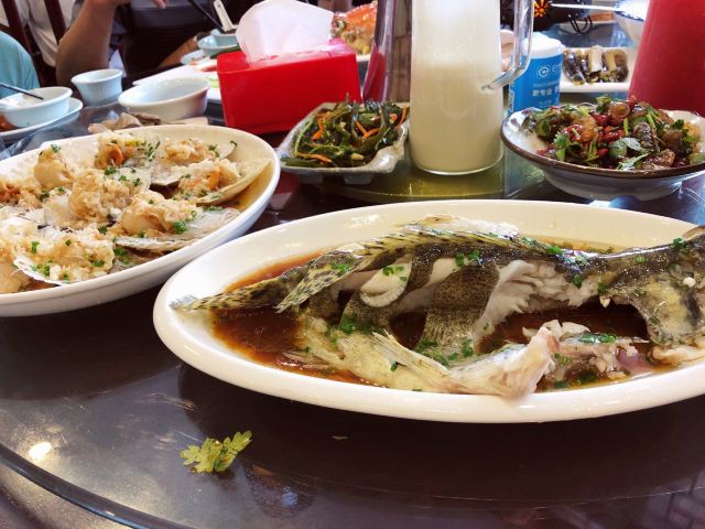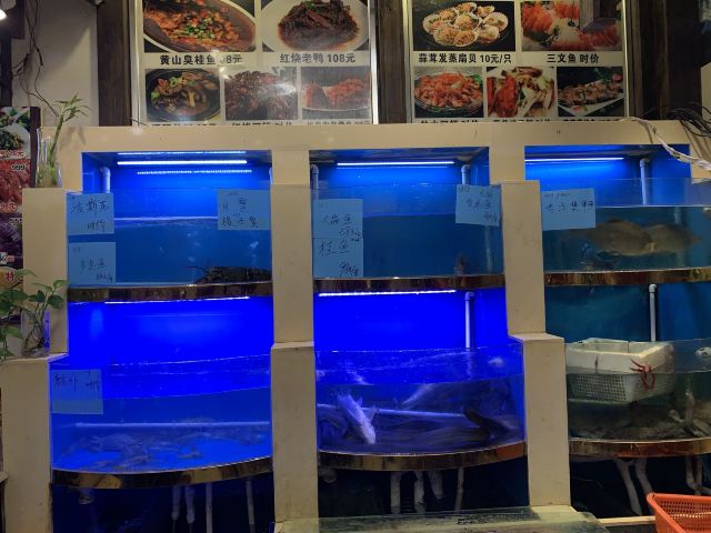 清蒸鲈鱼,酱黄瓜,臭桂鱼,红烧河鳗,荠菜双菇虾仁,黄牛肉,虎皮青椒,红烧鸭子,响油鳝丝,干锅牛蛙