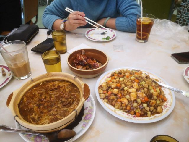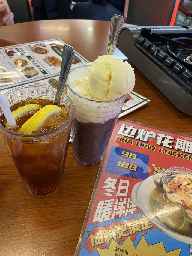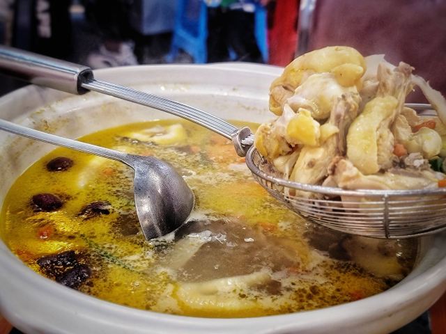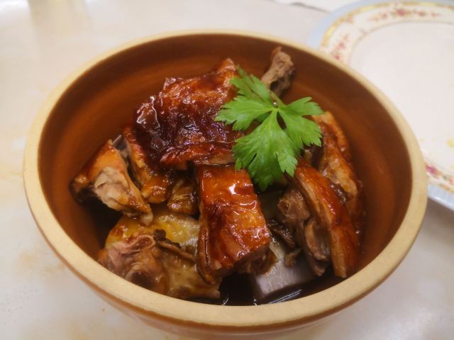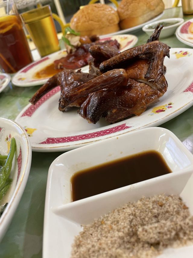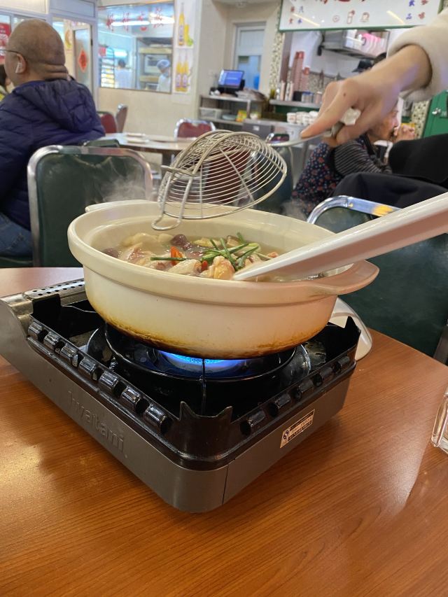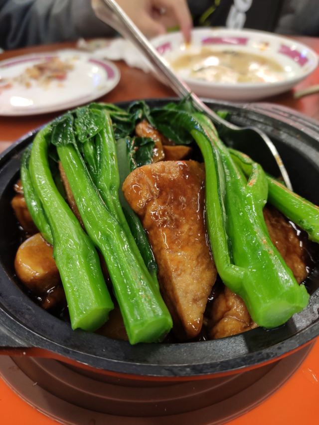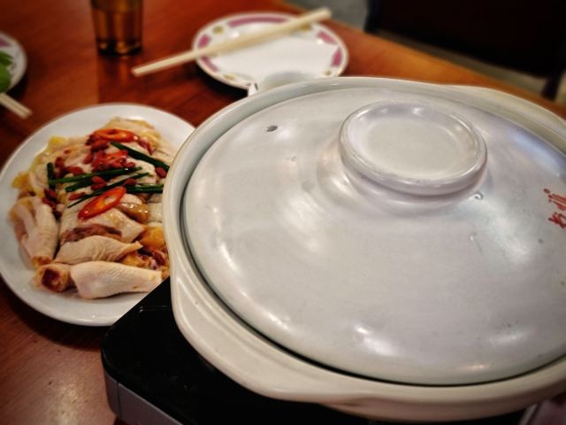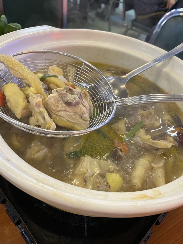 生意很火的一家店,每次去都需要等位。两个人,一份边炉花雕鲜鸡锅,一份干炒牛河,饱了。食材新鲜,蘸料不错,和花雕鸡相得益彰。鸡肉熟了就尽快捞起来吃,老了或冷了都会影响口感。最后放蔬菜,有了鸡汤的调味,味道很不错。